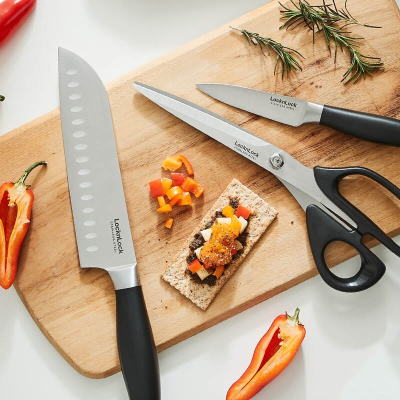 Bộ dao nhà bếp LocknLock màu đen: Gồm gì, dùng sao bền sắc, an toàn