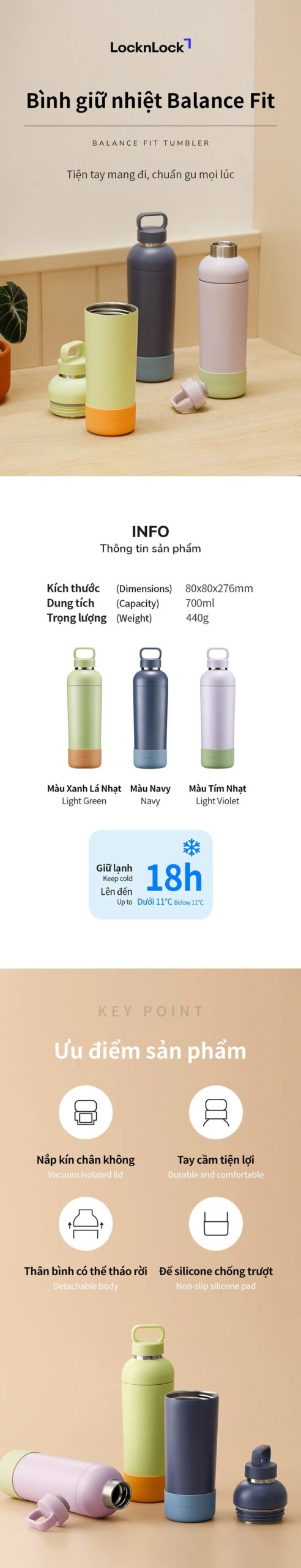 Bình Giữ Nhiệt LocknLock Balance Fit Tumbler 700ml – LHC4400 là lựa chọn lý tưởng cho những ai yêu thích phong cách sống năng động và khỏe mạnh. Với dung tích lớn 700ml, sản phẩm đáp ứng tốt nhu cầu uống nước, trà, cà phê hoặc nước ép suốt cả ngày.