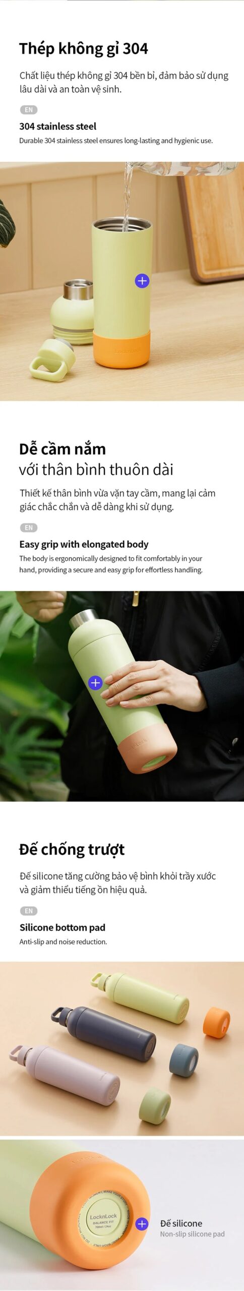 Bình được làm từ thép không gỉ 304 cao cấp, an toàn cho sức khỏe, không bám mùi và dễ vệ sinh. Nhờ công nghệ giữ nhiệt chân không hai lớp, Balance Fit Tumbler có khả năng giữ nóng và giữ lạnh vượt trội trong nhiều giờ liền, giúp bạn tận hưởng trọn vẹn hương vị thức uống.