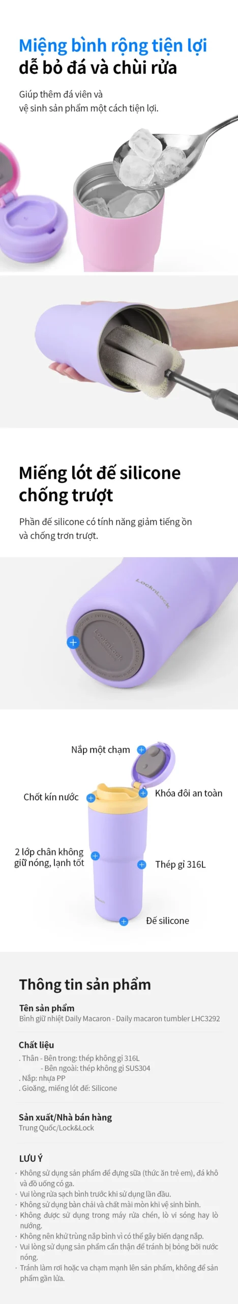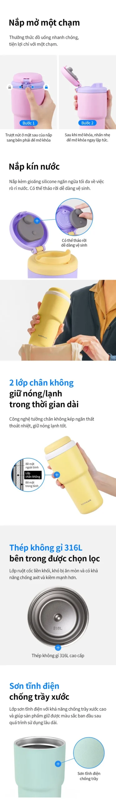 Bình giữ nhiệt LocknLock Daily Macaron Tumbler 480ml – LHC3292 mang đến phong cách trẻ trung, năng động với 6 màu sắc nổi bật: Xanh, Tím, Hồng, Vàng, Ngà SH1 và Ngà SH2. Thiết kế nhỏ gọn, hiện đại, phù hợp mang theo khi đi học, đi làm, dã ngoại hay tập luyện thể thao.