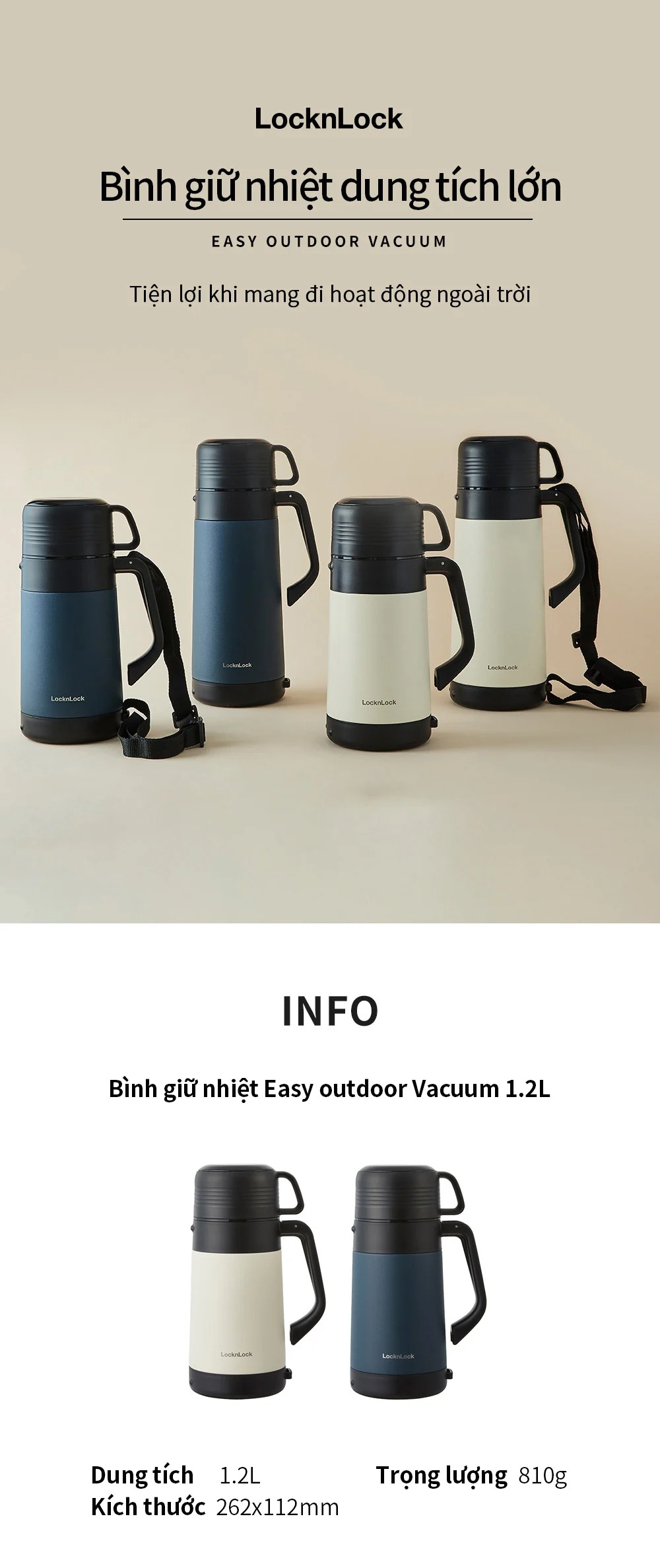 Bình Giữ Nhiệt Locknlock Easy Outdoor Vacuum Bottle 1.2L - 2 Màu (Ngà, Xanh Navy) - LHC1484