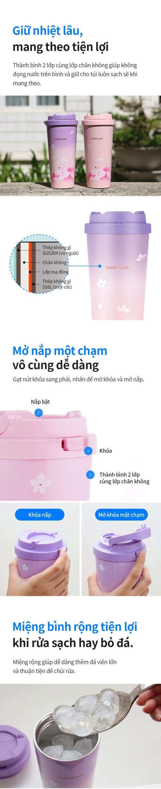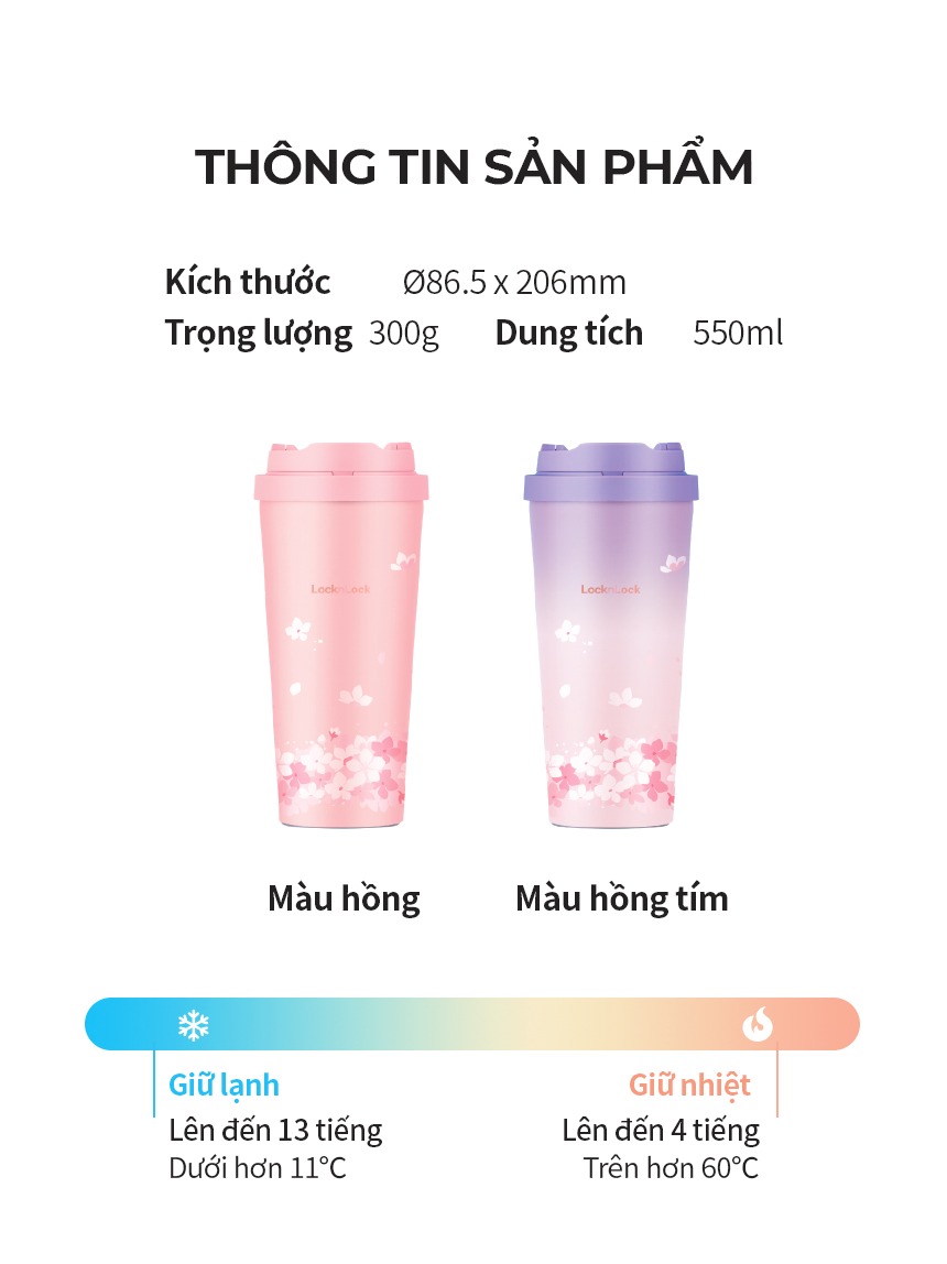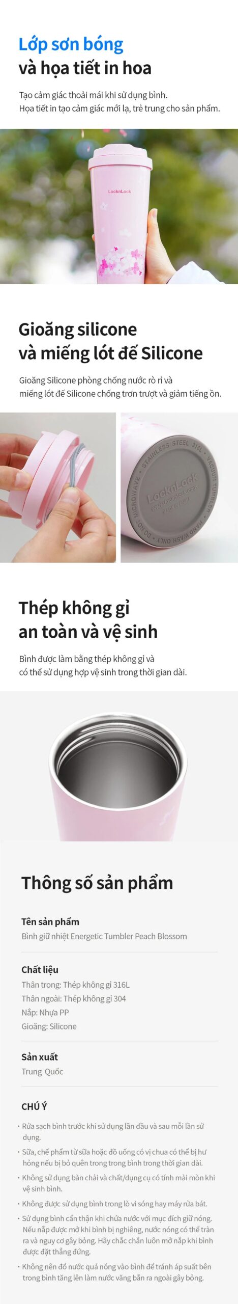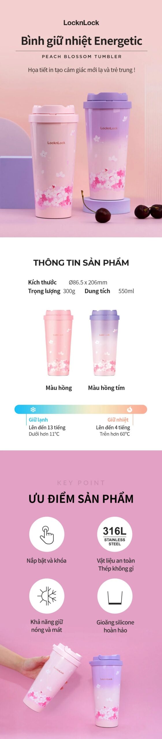 Bình Giữ Nhiệt LocknLock Energetic Tumbler Peach Blossom 550ml mang đến phong cách trẻ trung, năng động cùng khả năng giữ nhiệt vượt trội. Với dung tích 550ml, bình đáp ứng nhu cầu sử dụng hằng ngày từ đi học, đi làm cho đến du lịch hay tập luyện thể thao.