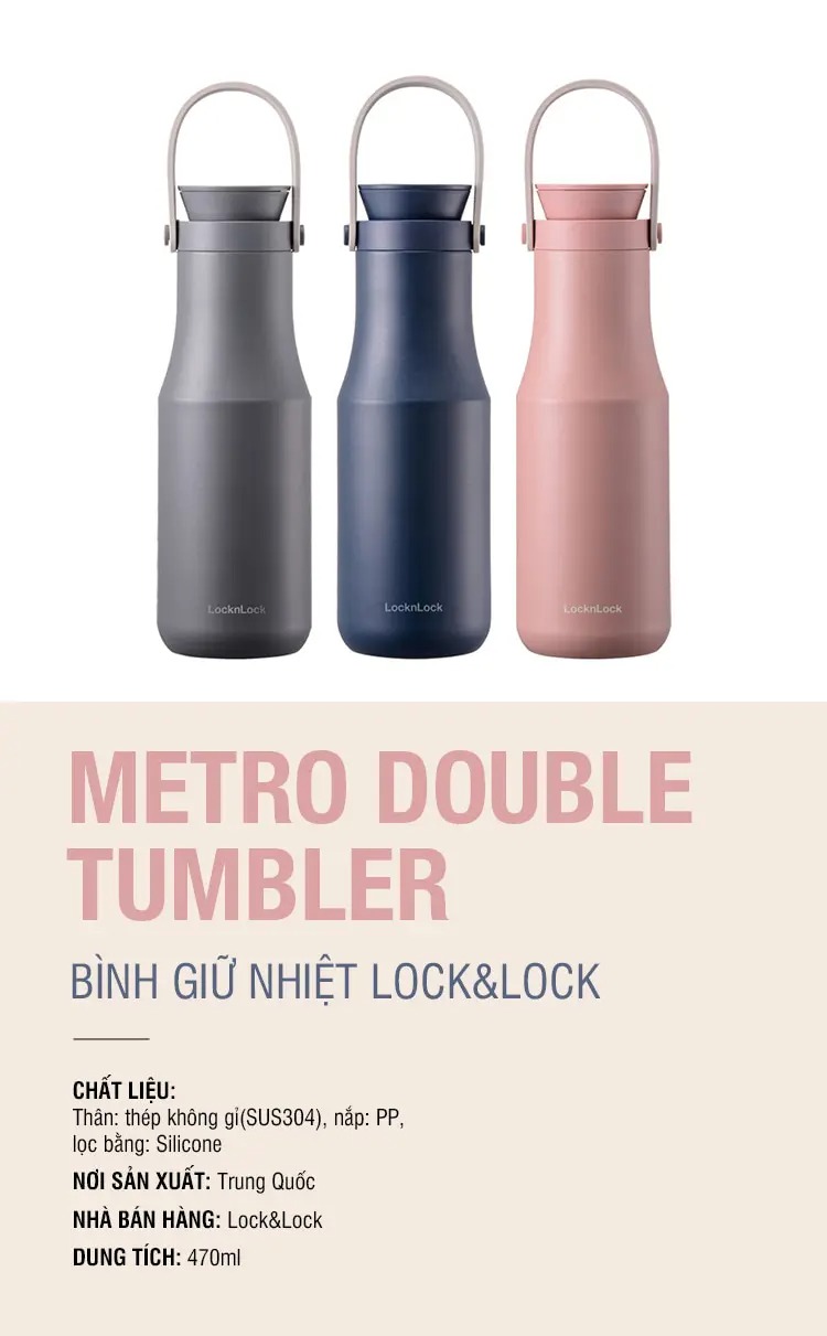 Bình Giữ Nhiệt LocknLock Metro Double 470ml – LHC4202 là lựa chọn hoàn hảo cho những ai yêu thích sự tiện lợi và phong cách tối giản. Với dung tích 470ml, bình phù hợp để mang theo cà phê, trà, nước lọc hay các loại đồ uống khác trong suốt cả ngày dài.