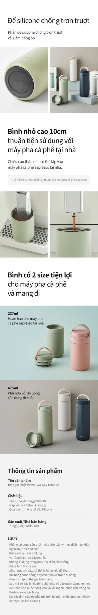 Bình Giữ Nhiệt LocknLock Metro Two Way 475ml – LHC4274 – 3 Màu (Xanh bạc hà, Xanh navy, Trắng) mang đến trải nghiệm tiện lợi và hiện đại cho người dùng. Với dung tích 475ml nhỏ gọn, sản phẩm phù hợp để mang theo đến văn phòng, trường học, tập luyện thể thao hay trong các chuyến du lịch.