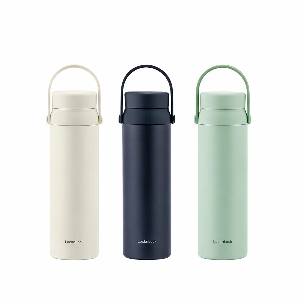 Bình giữ nhiệt Lock&Lock Wannabe Screw 450ml kèm quai xách silicone, giữ nhiệt nóng lạnh 3 màu LHC4246