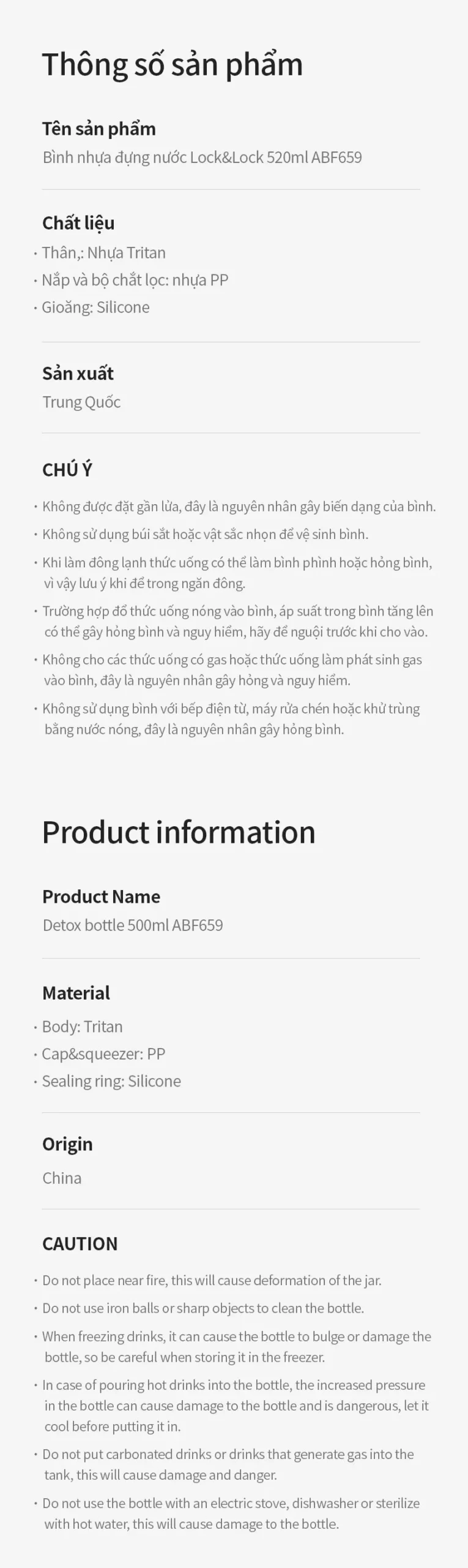 Với Bình nhựa đựng nước LocknLock ABF659 520ml, bạn có thể yên tâm sử dụng hằng ngày, vừa an toàn, vừa tiện lợi cho mọi hoạt động.