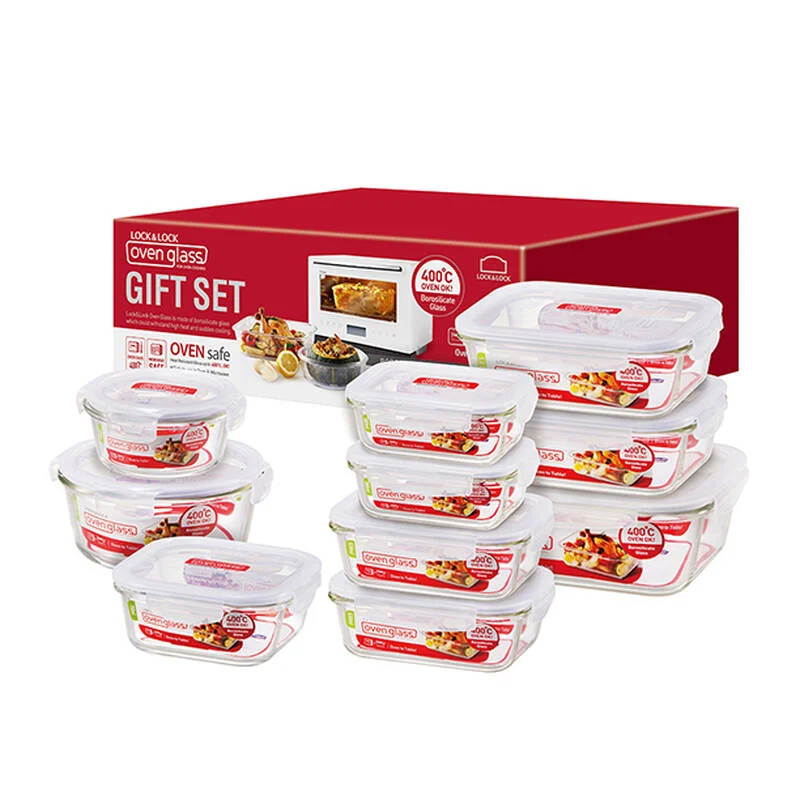 Bộ 10 hộp thủy tinh chịu nhiệt LocknLock LLG455S001 (gồm các mã LLG224 ×1, LLG428 ×2, LLG422 ×2, LLG445 ×2, LLG455 ×1, LLG821 ×1, LLG861 ×1) là giải pháp toàn diện cho nhu cầu bảo quản thực phẩm hàng ngày. Với chất liệu thủy tinh borosilicate chịu nhiệt cao, thiết kế nắp khóa 4 cạnh và bộ kích thước đa dạng, sản phẩm giúp lưu trữ, mang đi và sử dụng trong lò vi sóng/tủ lạnh một cách tiện lợi.