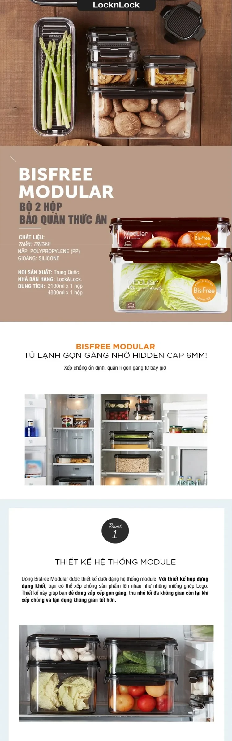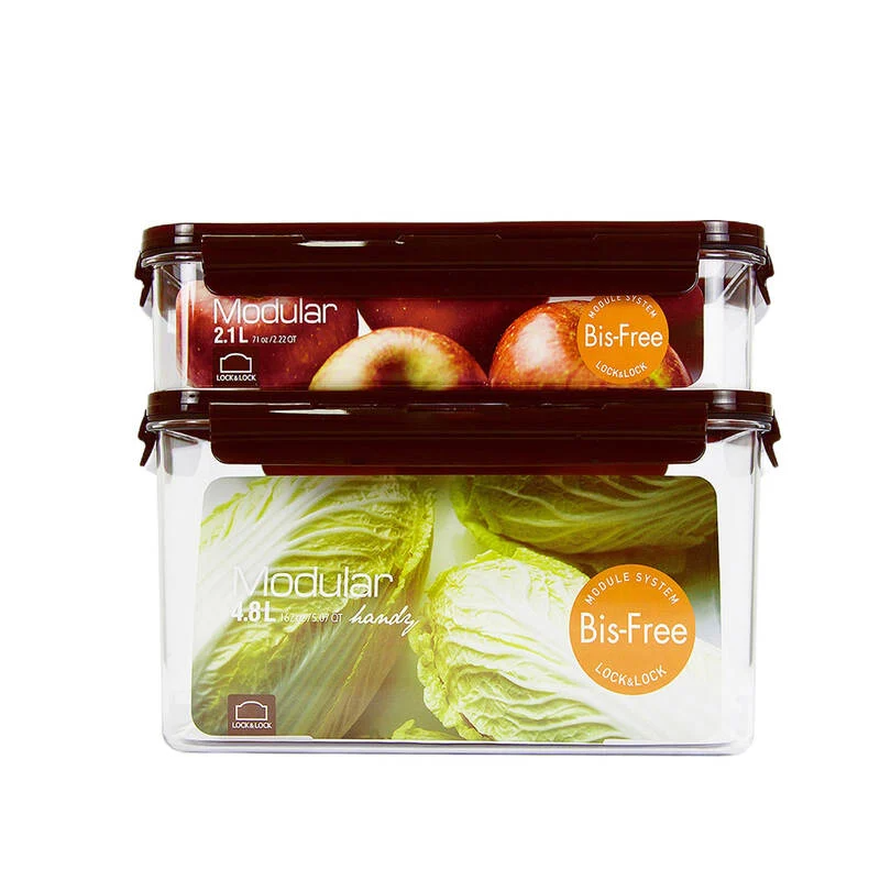 Bộ 2 hộp bảo quản hình chữ nhật LocknLock Bisfree Modular (mã LBF406S2LZD) – màu nâu tự nhiên, gồm 2 hộp nhựa cao cấp không BPA, dung tích lớn (~ 2.1 L mỗi hộp), chịu nhiệt khoảng -20 °C đến ~120 °C, thiết kế xếp chồng gọn gàng, lý tưởng để bảo quản thực phẩm trong tủ lạnh/tủ đông.