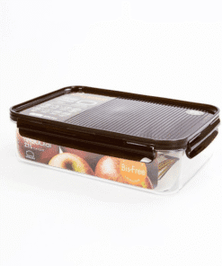 Thân hộp làm từ nhựa Tritan cao cấp, không chứa BPA, trong suốt nhưng bền bỉ, dễ quan sát thực phẩm bên trong mà không cần mở nắp. Nắp hộp được trang bị gioăng silicone kháng khuẩn (theo dòng Bisfree Modular), kết hợp khóa 4 cạnh giúp giữ kín hơi và mùi, ngăn tràn hiệu quả. Màu nâu sang trọng của nắp mang lại vẻ hài hòa, tinh tế khi đặt trong tủ lạnh hoặc bàn bếp.