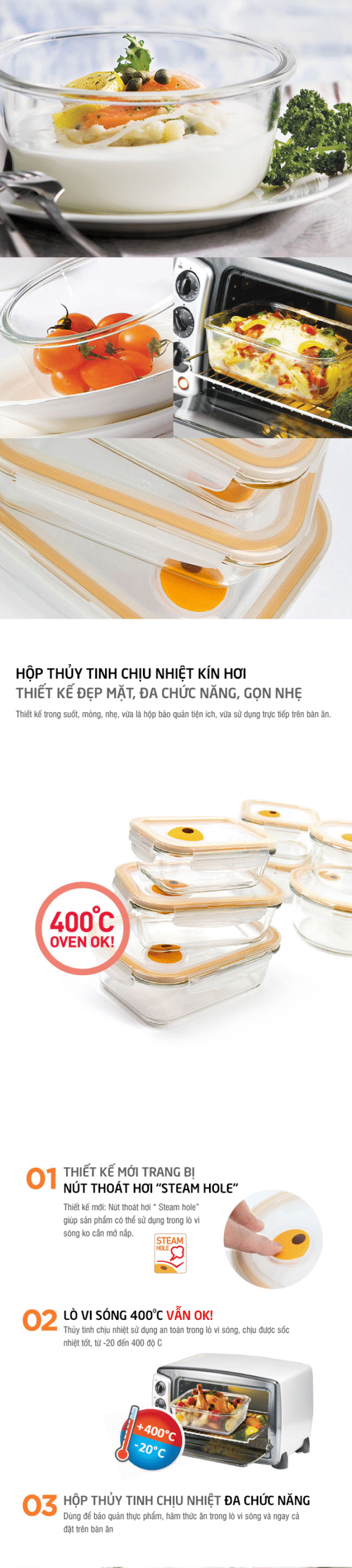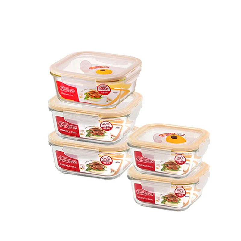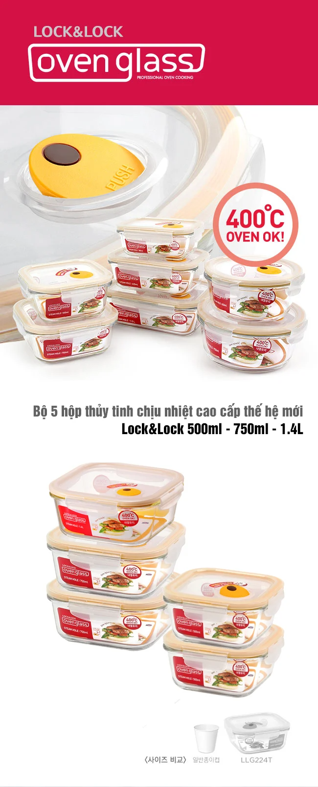 Bộ 5 Hộp Thủy Tinh Hình Vuông Locknlock Euro Steam Hole (LLG224Tx2, LLG234Tx1, LLG214Tx2) – LLG224TS5