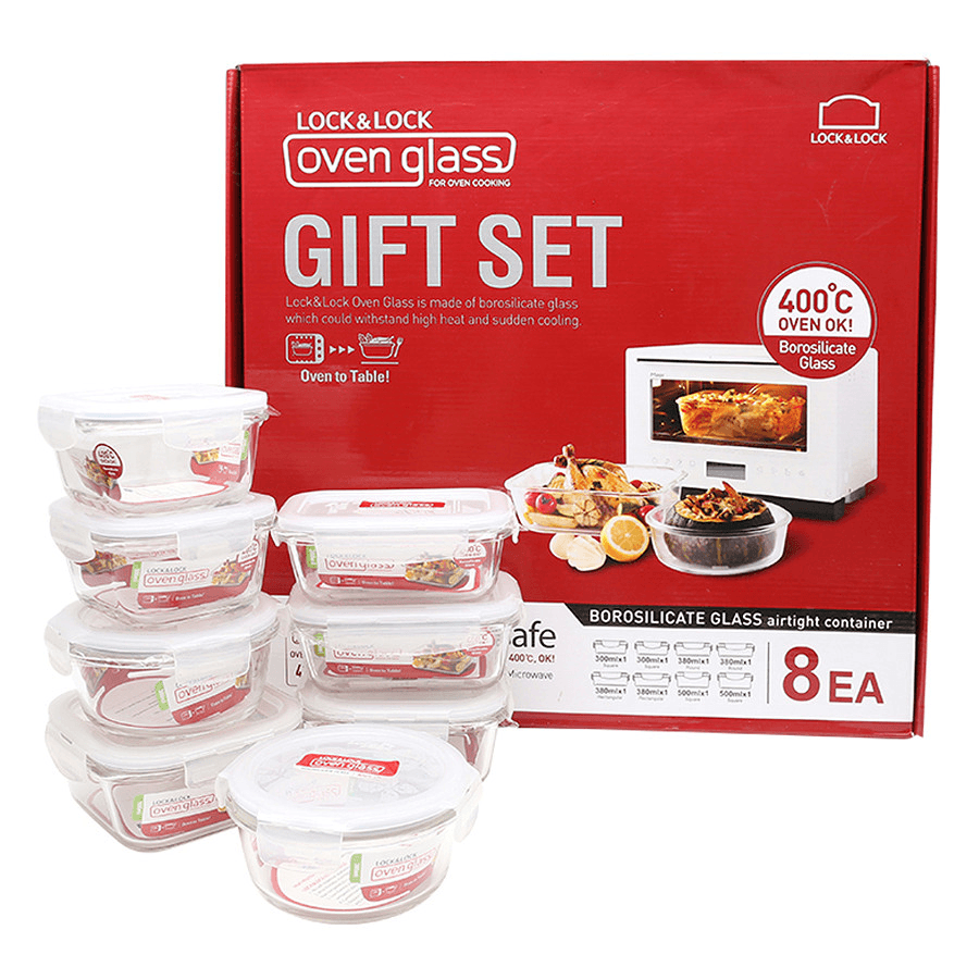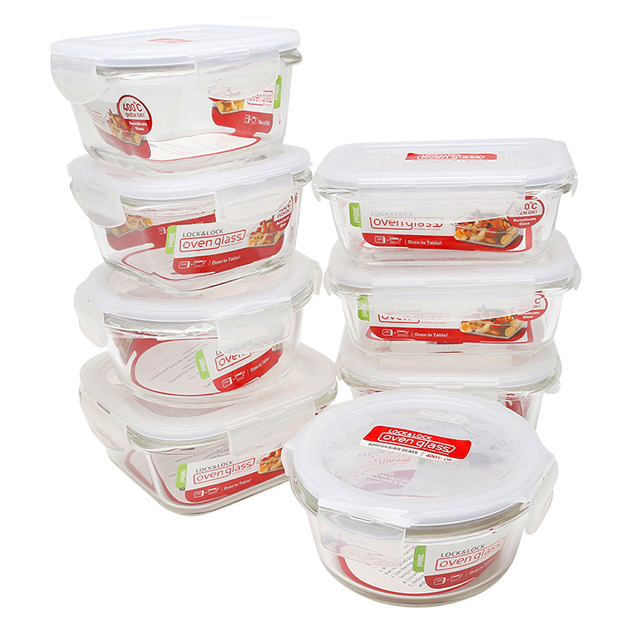Bộ 8 Hộp Thủy Tinh Chịu Nhiệt LocknLock LLG821YX3 là giải pháp thông minh và tiện dụng dành cho nhà bếp hiện đại. Bộ gồm 8 hộp thủy tinh đa kích cỡ, sử dụng chất liệu thủy tinh borosilicate chịu nhiệt cao, kết hợp với nắp khóa 4 cạnh và gioăng silicone giúp bảo quản thực phẩm tươi ngon, ngăn tràn và bảo đảm vệ sinh an toàn. Thiết kế trong suốt, sang trọng và tiện lợi giúp bạn dễ dàng sắp xếp, bảo quản và mang theo thức ăn.