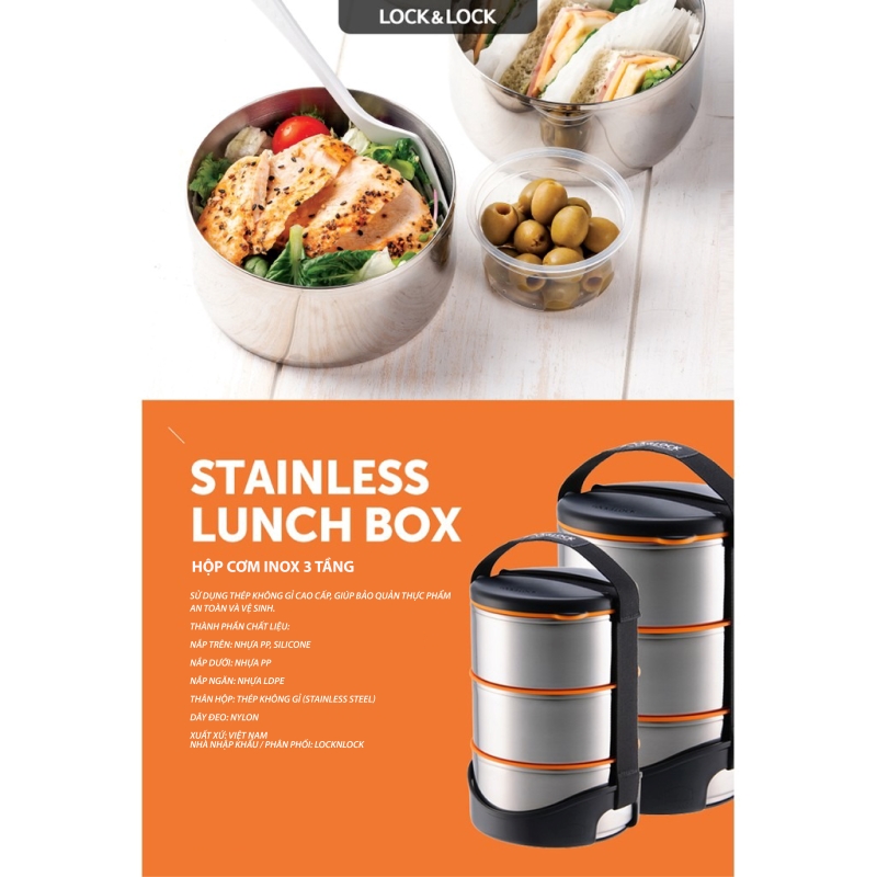 Bộ hộp cơm 3 tầng LocknLock LHC990 và LHC991 được thiết kế tiện lợi cho việc mang cơm, thức ăn đi làm, đi học hoặc dã ngoại. Sản phẩm làm từ thép không gỉ cao cấp an toàn cho sức khỏe, giữ nhiệt và bảo quản thực phẩm tươi ngon lâu hơn. Thiết kế 3 tầng riêng biệt giúp phân chia món ăn hợp lý, tránh lẫn mùi, đồng thời nắp đậy kín khít, hạn chế rò rỉ.