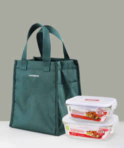 Mang bữa trưa tiện lợi và phong cách cùng bộ 3 món Lock&Lock màu xanh lá: 2 hộp thủy tinh chịu nhiệt LLG429D & LLG428 và 1 túi vải đựng HWB820. Nắp hộp có đệm silicone chống rò rỉ, thủy tinh trong suốt dễ quan sát, an toàn dùng trong lò vi sóng, tủ lạnh và máy rửa chén. Thiết kế hiện đại, gọn gàng, thích hợp mang đi văn phòng, học tập hoặc dã ngoại.
