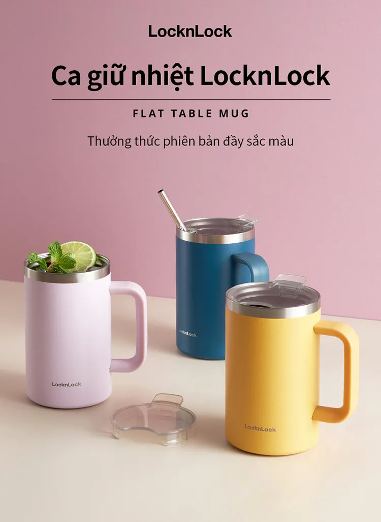 LHC4320 – Ca Nước Giữ Nhiệt LocknLock Flat Table Mug 730ml – 3 màu (Xanh Cổ Vịt, Tím, Vàng) - https://locknlockonline.com/