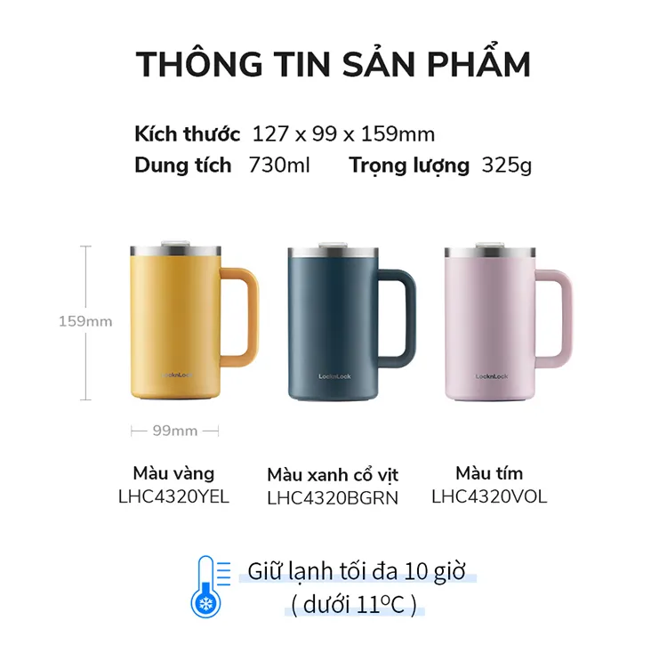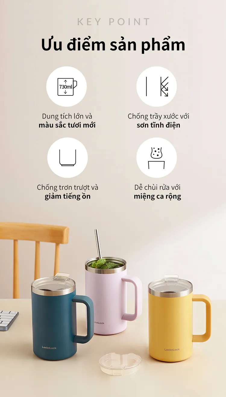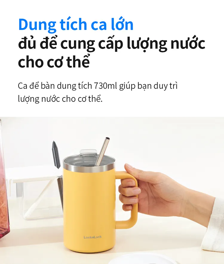 Ca Nước Giữ Nhiệt LocknLock Flat Table Mug 730ml – 3 màu (Xanh Cổ Vịt, Tím, Vàng) – LHC4320 là lựa chọn hoàn hảo cho những ai yêu thích sự tiện lợi và phong cách hiện đại. Sản phẩm được thiết kế với dung tích lớn 730ml, phù hợp để mang theo nước, cà phê, trà hay các loại đồ uống yêu thích suốt cả ngày.