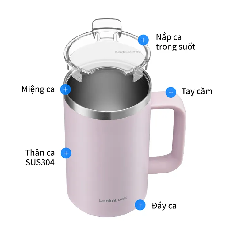 LHC4320 – Ca Nước Giữ Nhiệt LocknLock Flat Table Mug 730ml – 3 màu (Xanh Cổ Vịt, Tím, Vàng)