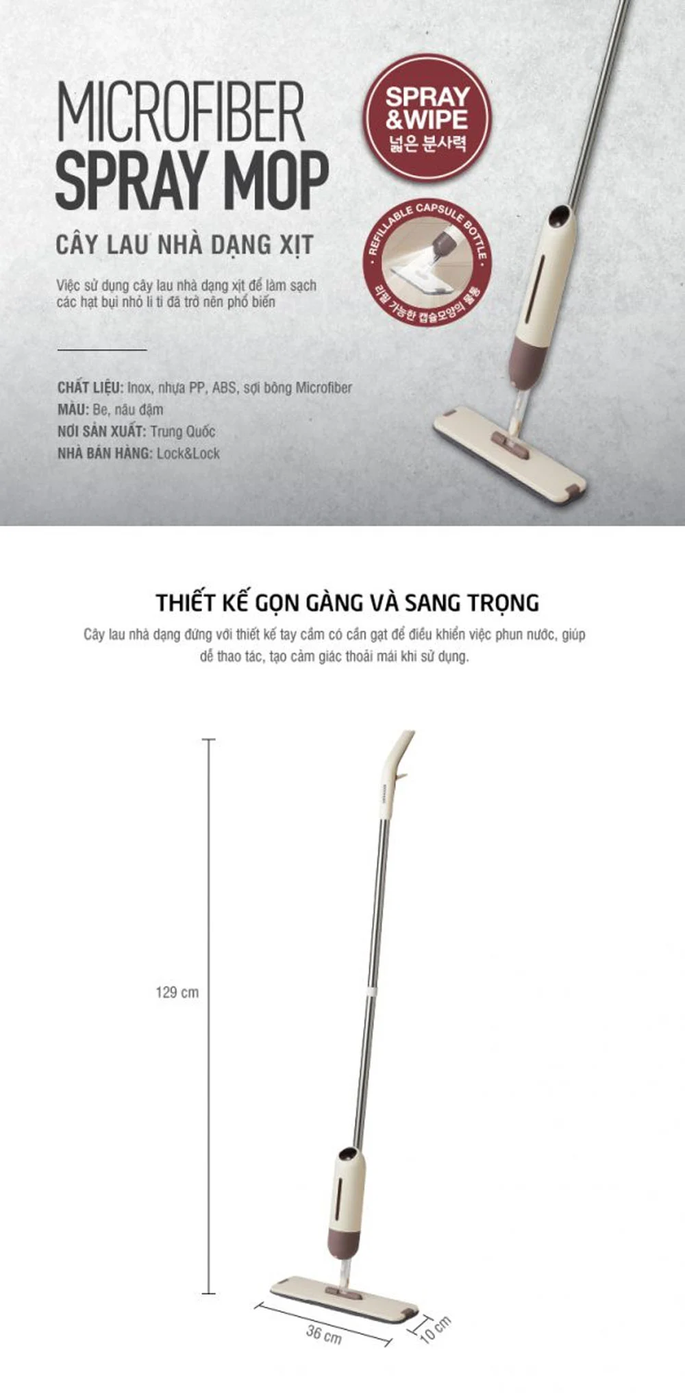 Chất liệu: Nhựa, inox, sợi microfiber