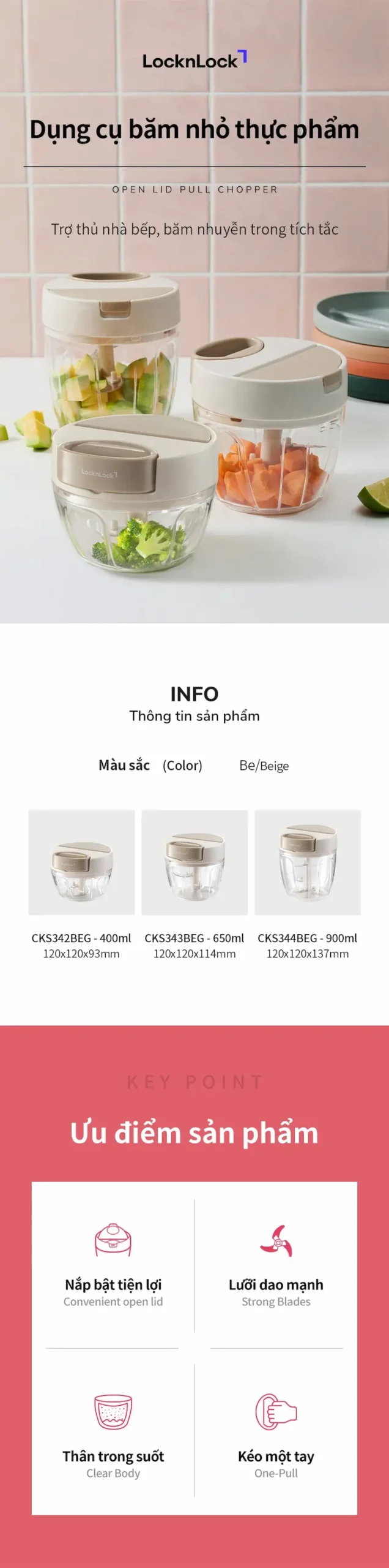 Dụng cụ băm nhỏ thực phẩm nhiều dung tích màu be, có nắp bật