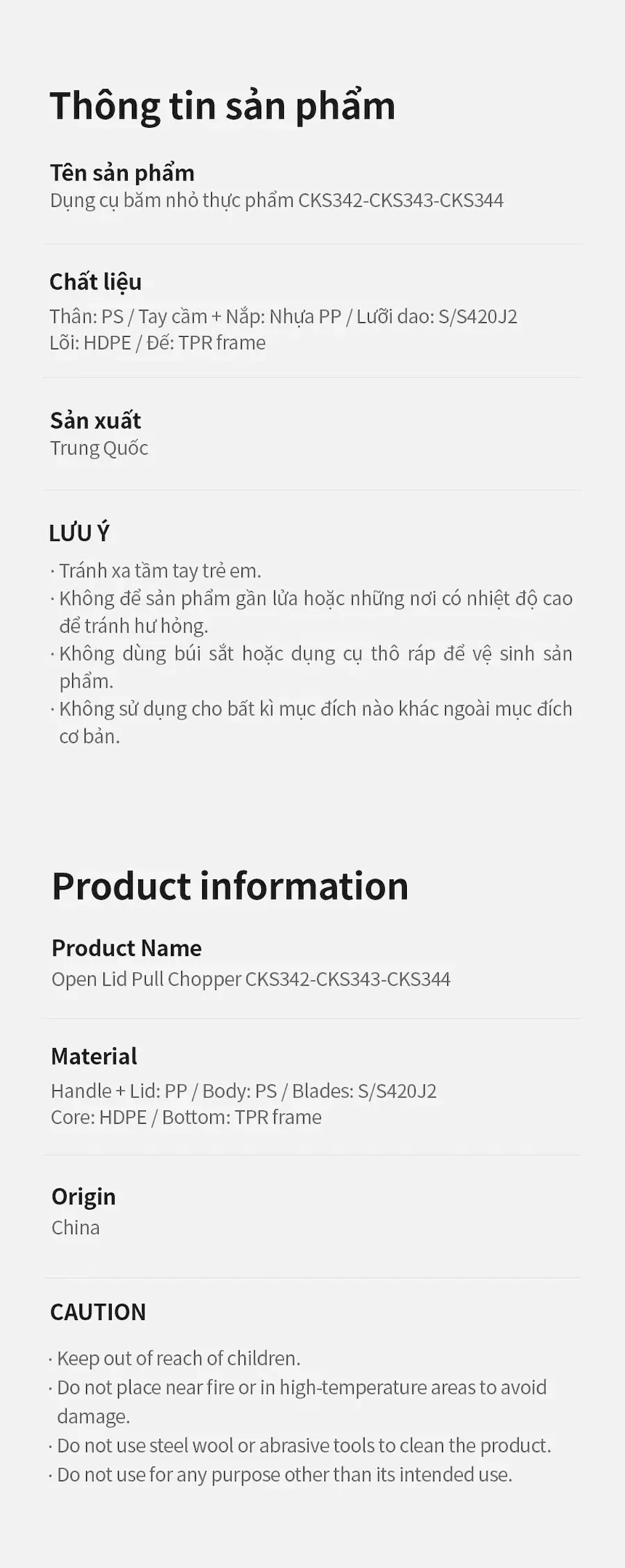-Lưỡi dao cực kỳ sắc bén. Tránh đưa ngón tay vào bên trong để đảm bảo an toàn.