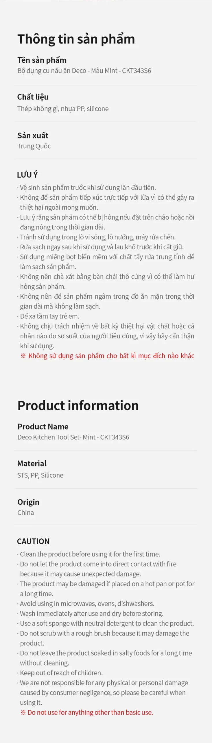 Bộ dụng cụ nấu ăn Deco LocknLock-6P-Mint-CN-6-STS – CKT343S6