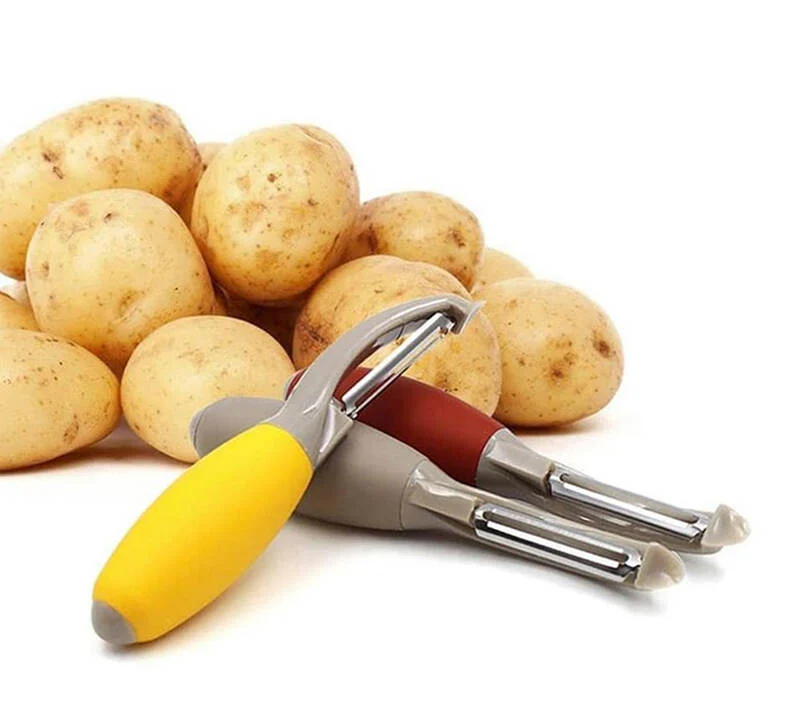Lưỡi dao thép không gỉ cao cấp: Sắc bén, bền bỉ, chống gỉ sét, giúp bào mỏng vỏ rau củ nhanh chóng.