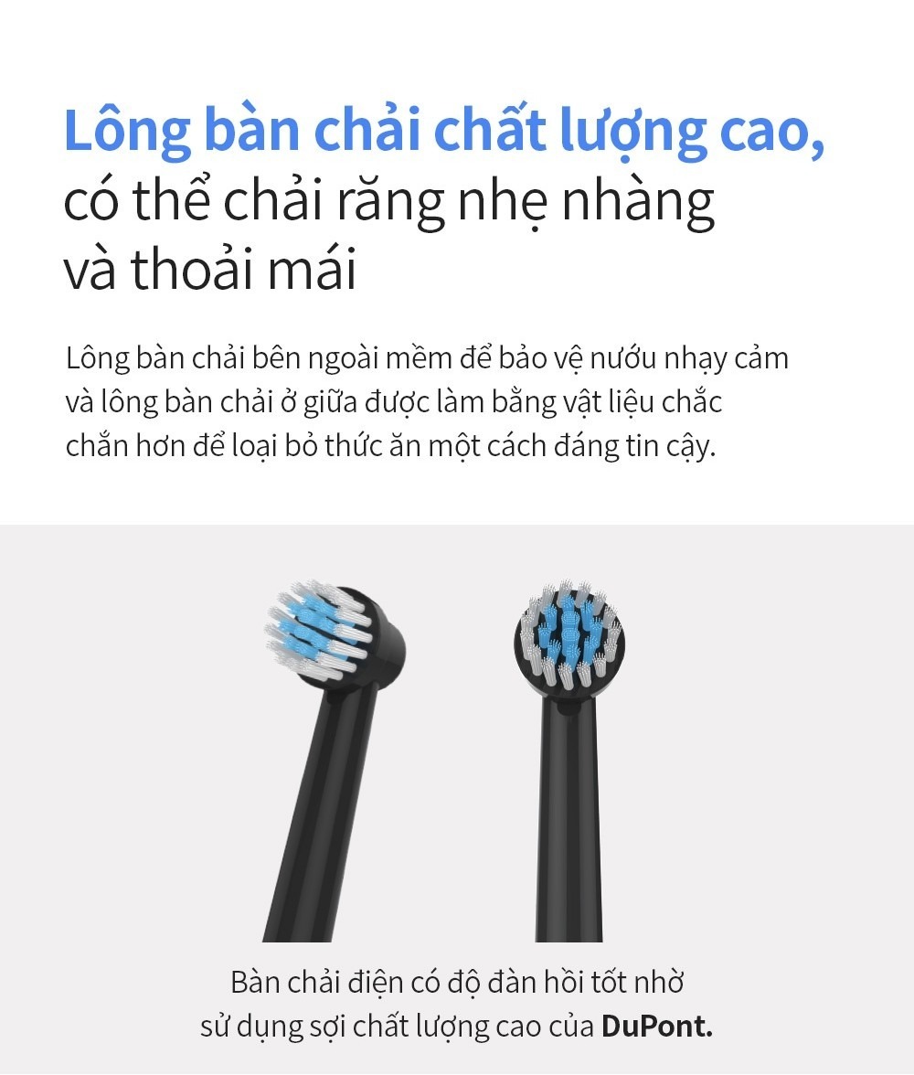 Thiết kế chắc chắn, dễ dàng tháo lắp và thay thế, mang lại sự tiện lợi trong quá trình sử dụng hằng ngày. Chất liệu an toàn, bền bỉ, đảm bảo trải nghiệm vệ sinh răng miệng sạch sẽ và an toàn cho cả gia đình.