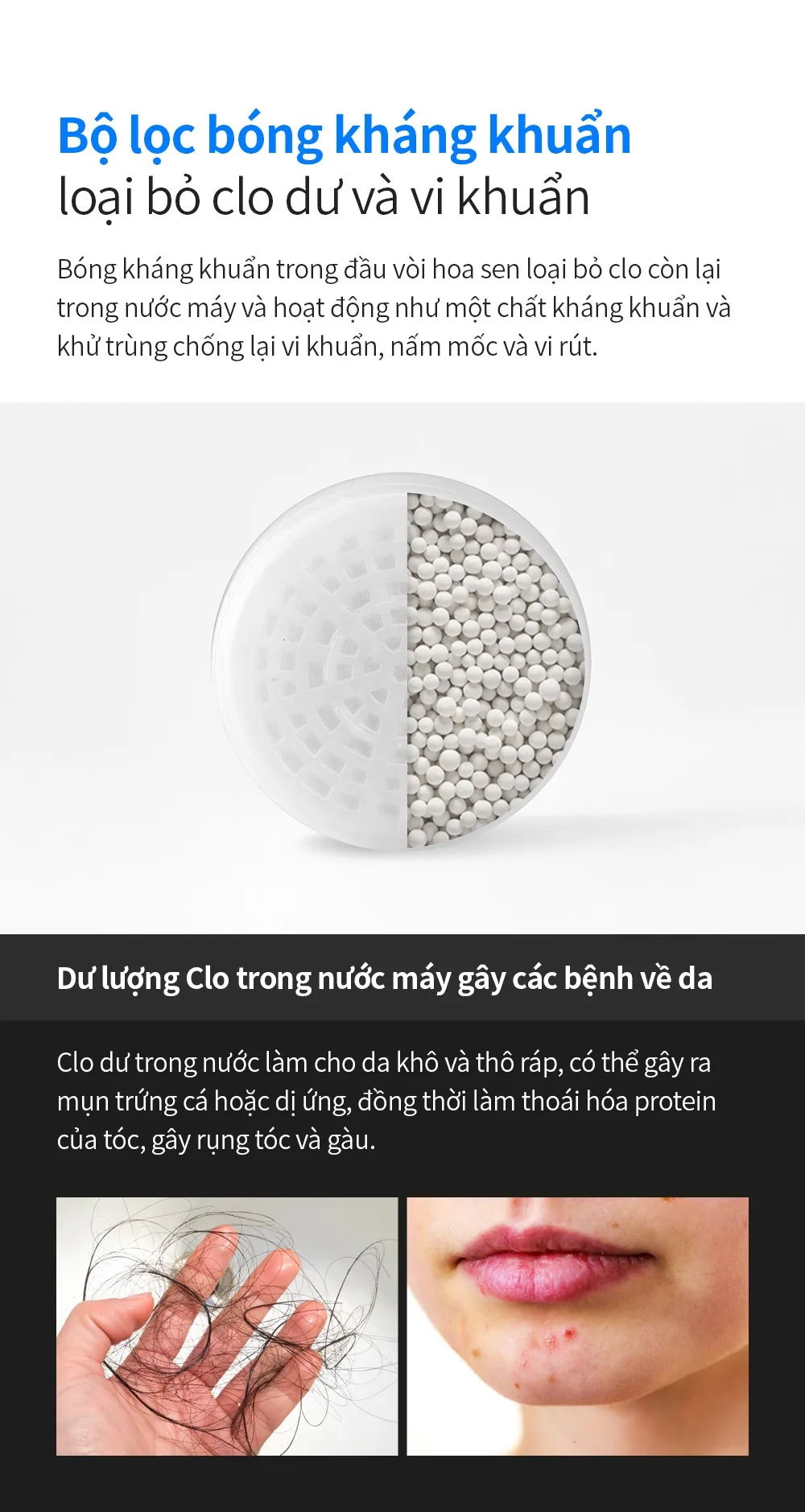 Bảo vệ da và tóc khỏi các tạp chất có hại trong nước.