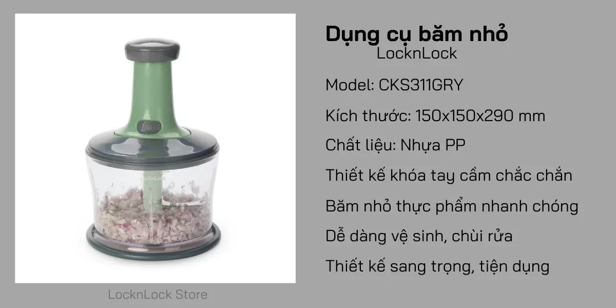 👉 Với Dụng cụ băm nhỏ LocknLock CKS311GRY, việc sơ chế thực phẩm trở nên nhanh chóng, an toàn và tiện lợi hơn bao giờ hết.