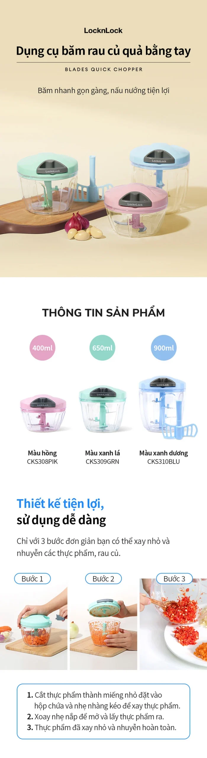 CKS3 – Dụng Cụ Băm Rau Củ Quả LocknLock, Size S-M-L, 3 Màu (Hồng, Xanh Lá, Xanh Dương) – CKS308PIK, CKS309GRN , CKS310BLU