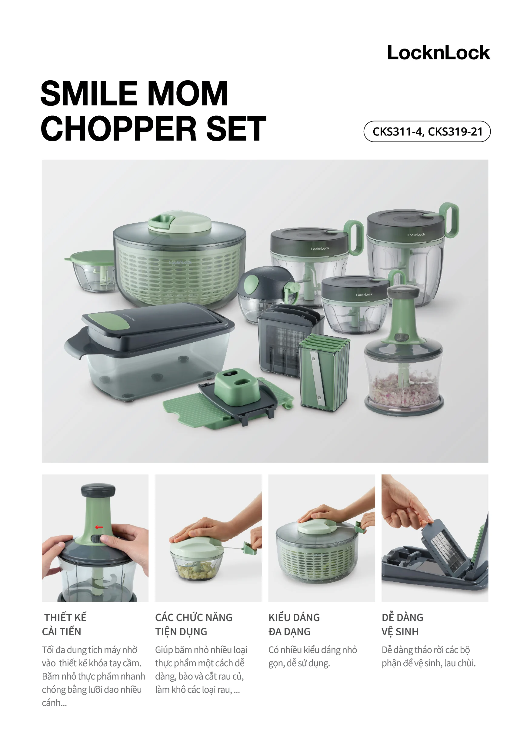 Dụng Cụ Băm Rau Củ Quả Ring Pull Chopper LocknLock,- Màu Xanh Lá – 3 Dung Tích (400ml – 650ml – 900ml) – CKS312GRN, CKS313GRN, CKS314GRN