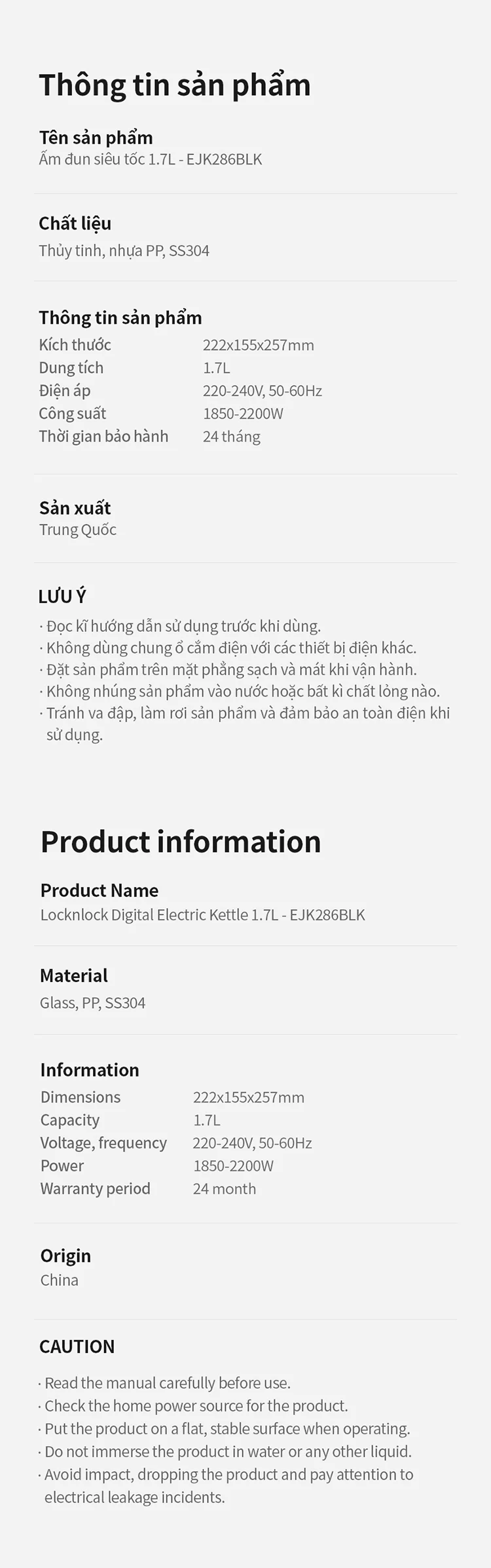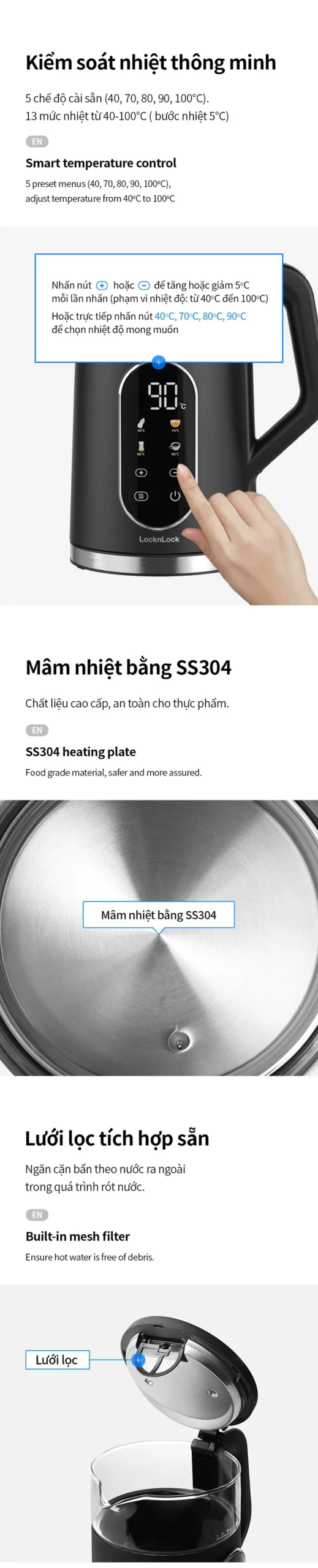 Ấm đun siêu tốc LocknLock Digital electric kettle 1.7L- Màu đen EJK286BLK