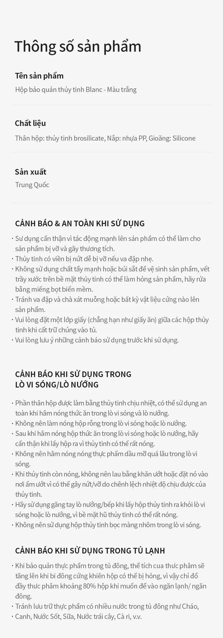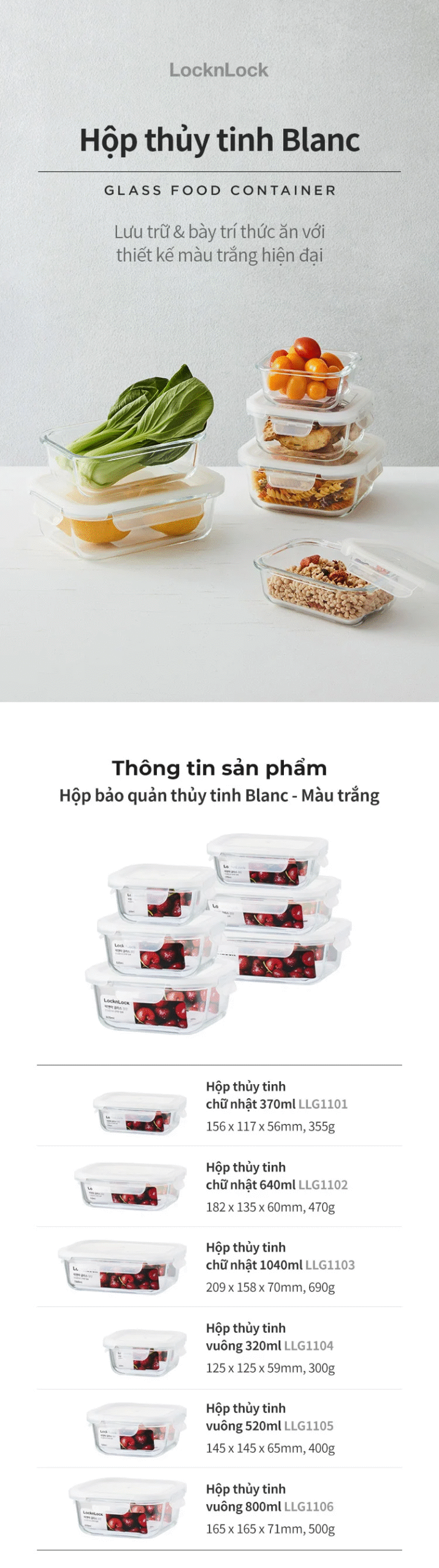 Hộp Bảo Quản Thực Phẩm Thủy Tinh Blanc – Màu Trắng – 320ml, 370ml, 520ml, 640ml, 800ml 1040ml-LLG1101, LLG1102, LLG1103, LLG1104, LLG1105, LLG1106