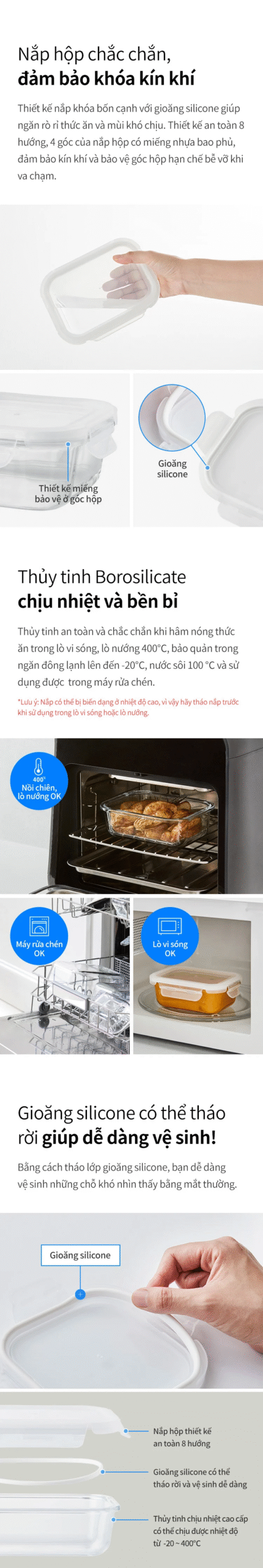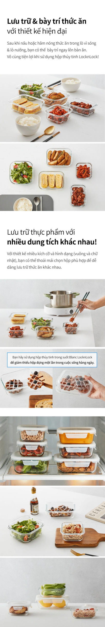 Hộp thủy tinh Blanc màu trắng từ LocknLock – lựa chọn hoàn hảo bảo quản thực phẩm an toàn, đa chức năng: chịu nhiệt đến 400°C, bảo quản lạnh tới -20°C, khóa kín 4 chiều chống tràn. Có nhiều dung tích (320ml, 370ml, 520ml, 640ml, 800ml, 1040ml) phù hợp mọi nhu cầu lưu trữ.