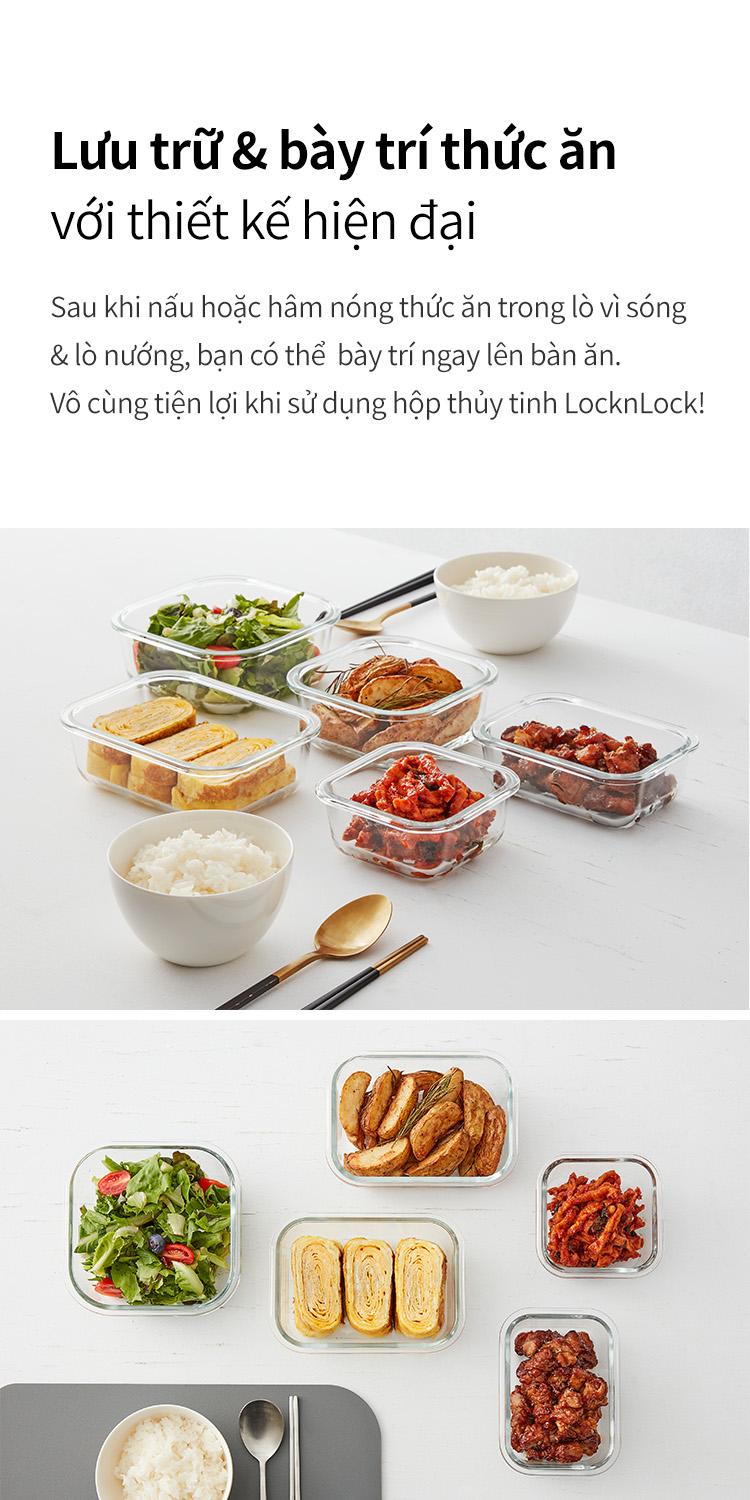 Muốn một sản phẩm chất lượng cao: thương hiệu Lock&Lock, vật liệu thủy tinh an toàn cho sức khỏe, nắp khóa chắc chắn.
