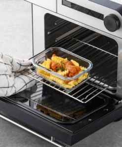 Thân thủy tinh chịu nhiệt cao giúp bạn hâm nóng hoặc nấu trực tiếp (với hộp không nắp hoặc mở nắp) rồi sử dụng luôn hộp để bảo quản — tiết kiệm thời gian và dụng cụ.