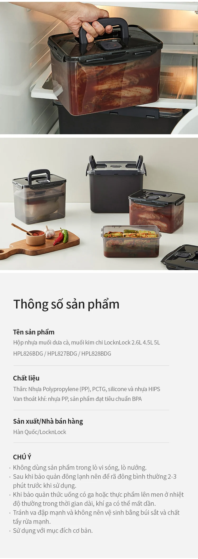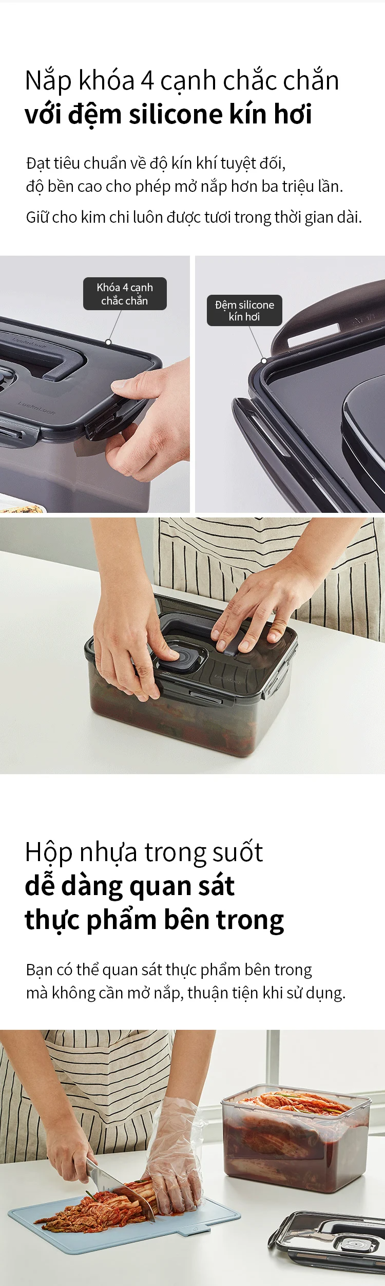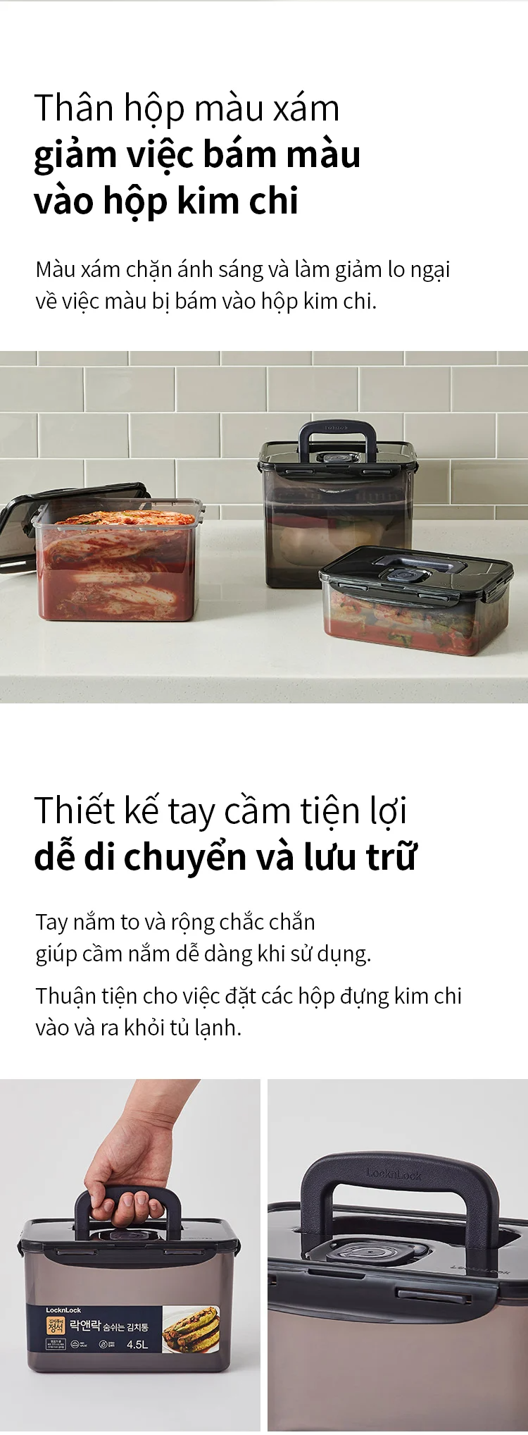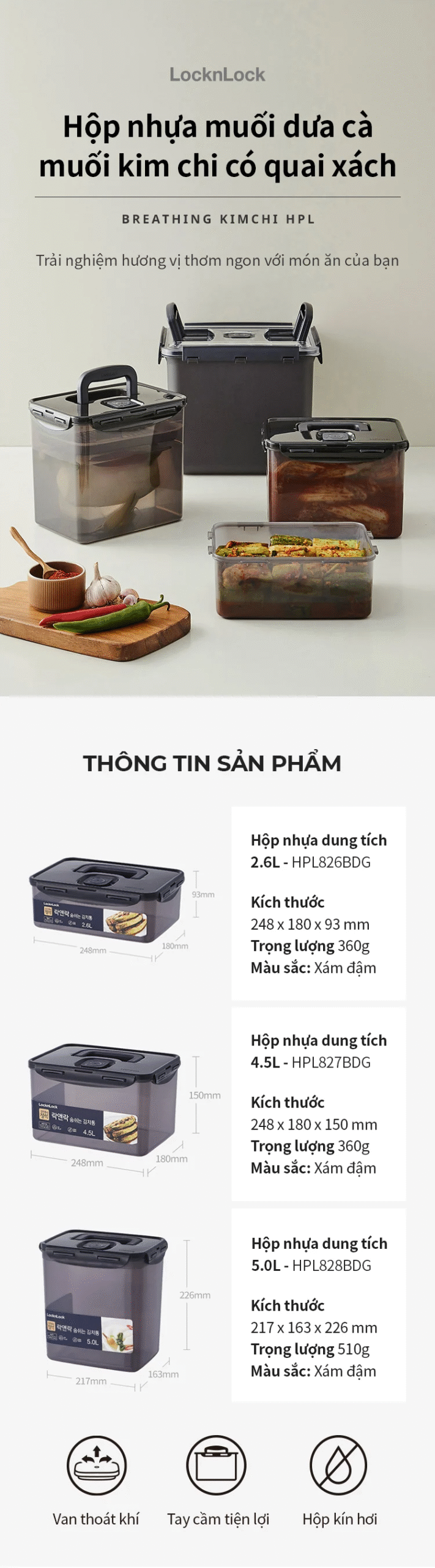 Hộp Muối Kim Chi LocknLock Breathing Kimchi 4 dung tích – Màu Xám Đậm