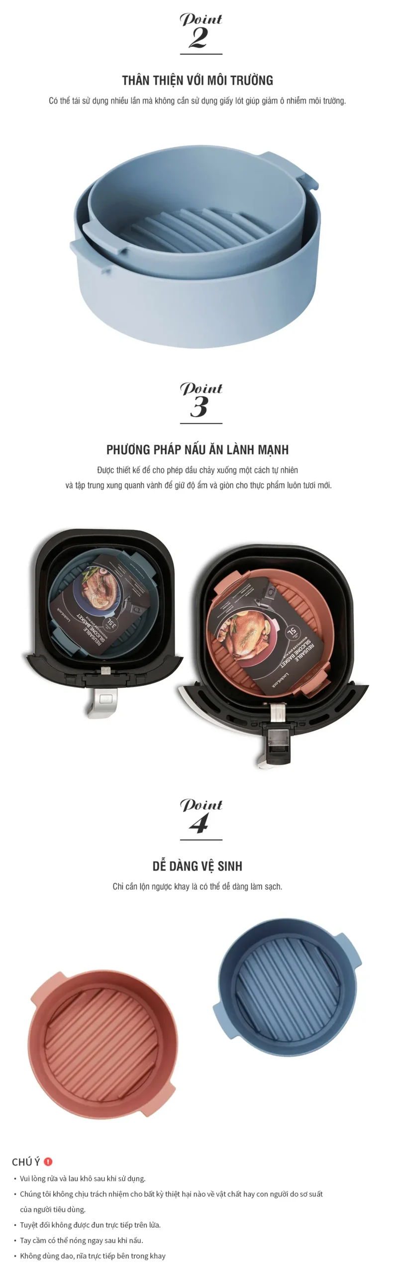 Khay silicone LocknLock CKB003 được thiết kế chuyên dụng cho nồi chiên không dầu và lò vi sóng, giúp chế biến món ăn nhanh gọn, hạn chế dầu mỡ bám dính và tiết kiệm thời gian vệ sinh. Với chất liệu silicone cao cấp chịu nhiệt, sản phẩm an toàn cho sức khỏe, tiện dụng và bền bỉ trong gian bếp hiện đại.