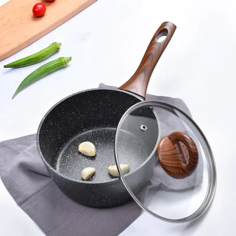 LBU1181 – Chảo nhôm sâu lòng chống dính BAUM Marble 18cm, 1 tay cầm, nắp thủy tinh, hiệu Lock&Lock