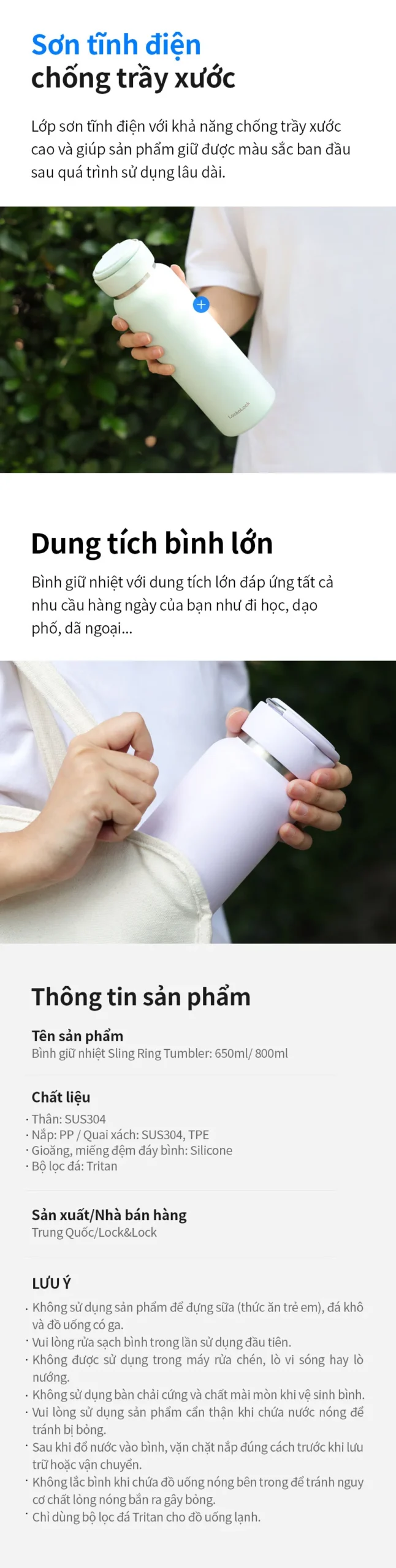 Bình giữ nhiệt LocknLock Sling Ring Tumbler có các đặc điểm nổi bật sau: