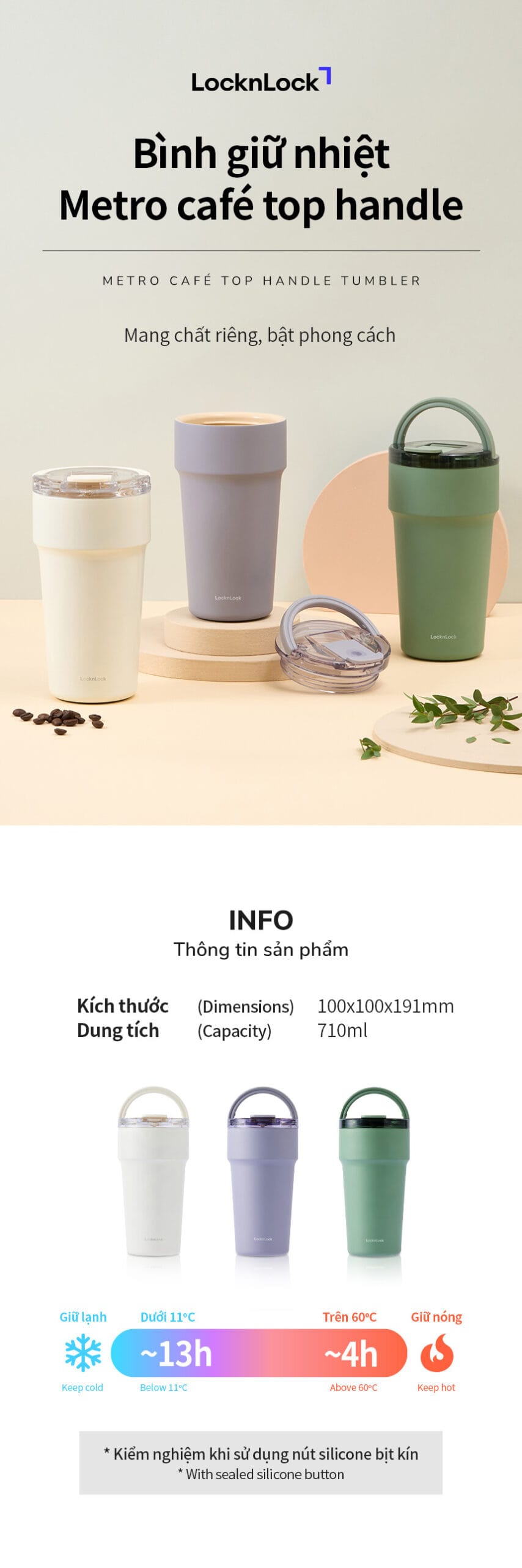 LHC4416 (710ml): Giữ nóng ~ 4 giờ (≥ 60°C) — Giữ lạnh ~ 13 giờ (≤ 11°C)