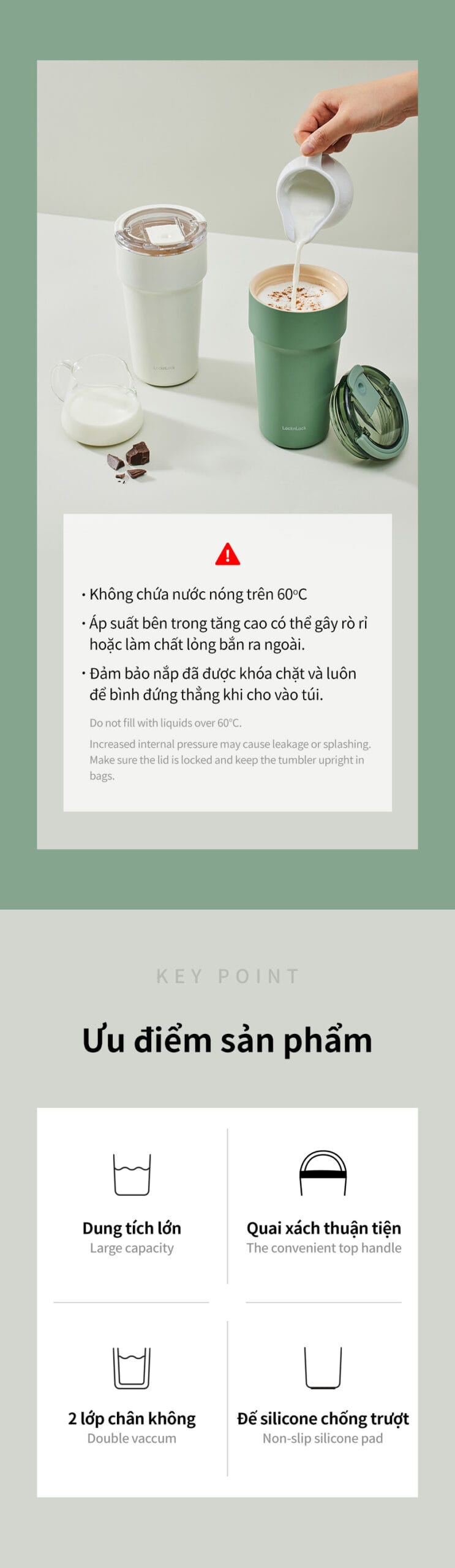 - Giữ nhiệt hiệu quả 6–8 giờ cho cả nóng và lạnh