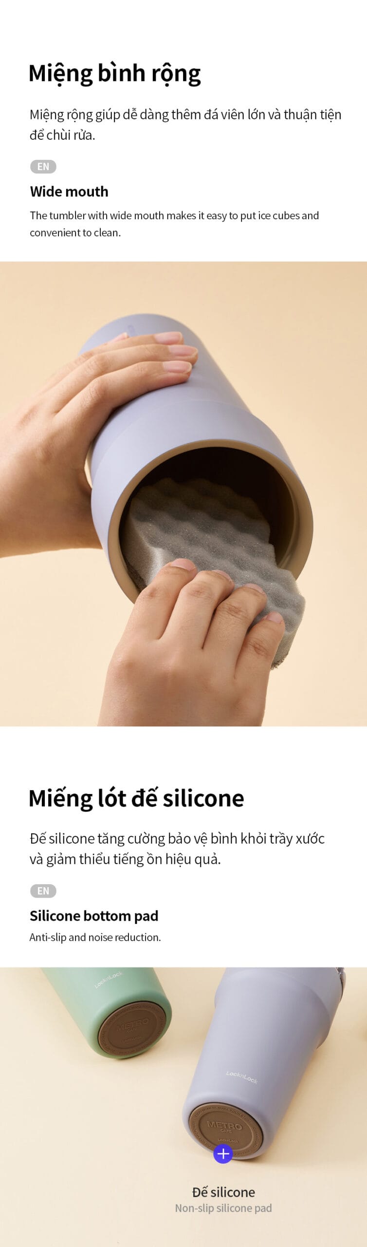 Miệng cốc rộng: dễ cho đá viên/cho và vệ sinh.