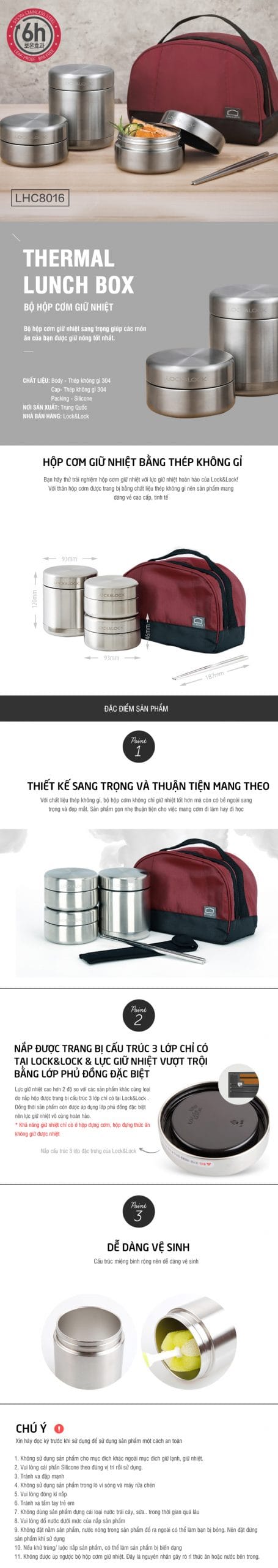 LHC8015 - Bộ Hộp Cơm Giữ Nhiệt Lock&Lock 910Ml (350Mlx1, 280Mlx2, Chopstickx1, Chopstick Casex1, Bagx1) - LocknLock Online