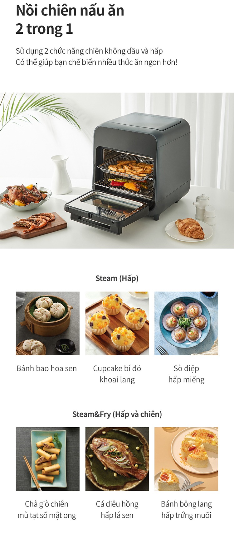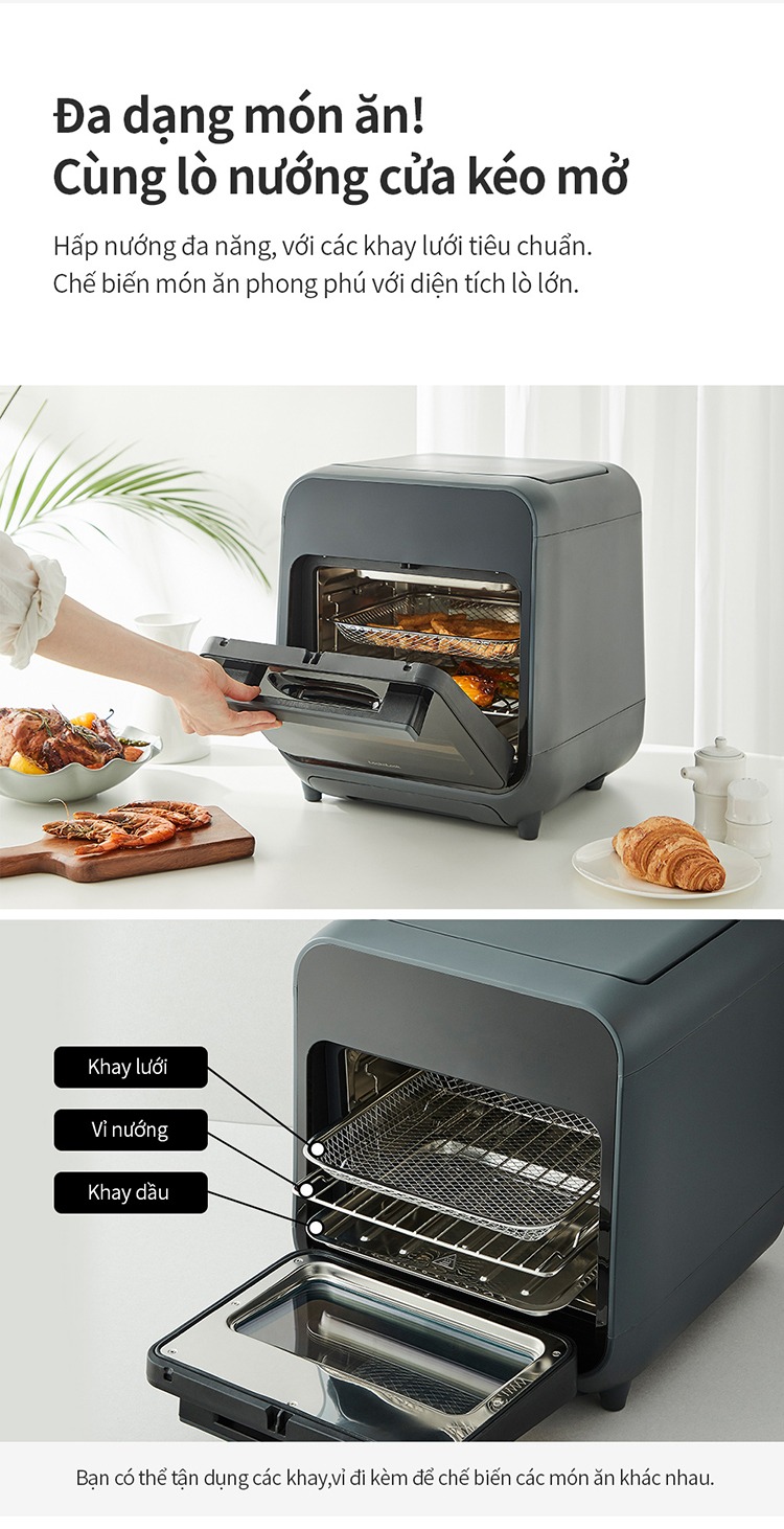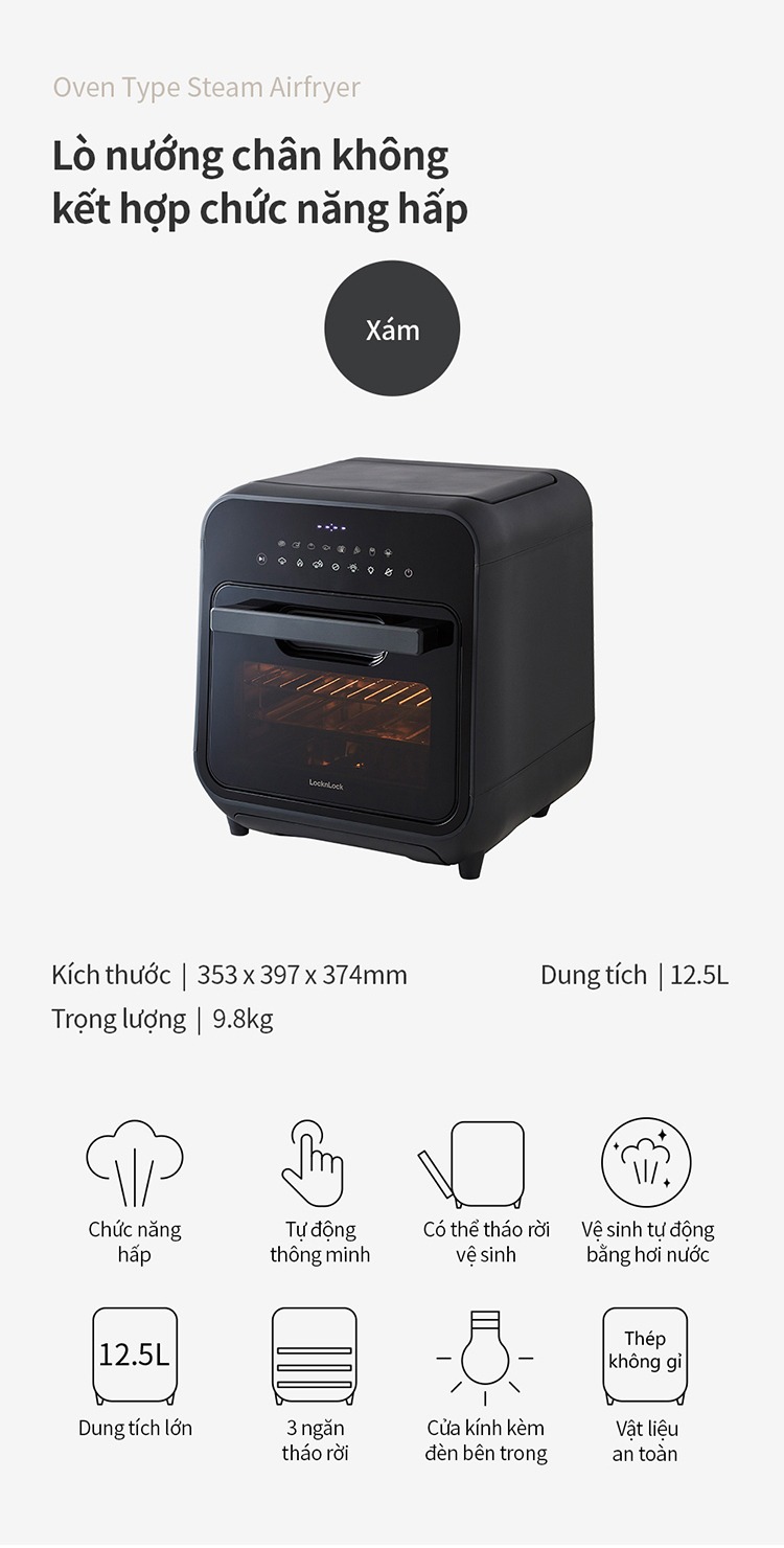 Lò Nướng Chân Không LocknLock – EJF693GRY là thiết bị nhà bếp hiện đại, tích hợp chức năng chiên nướng không dầu, giúp chế biến món ăn thơm ngon, giòn rụm mà vẫn đảm bảo sức khỏe.