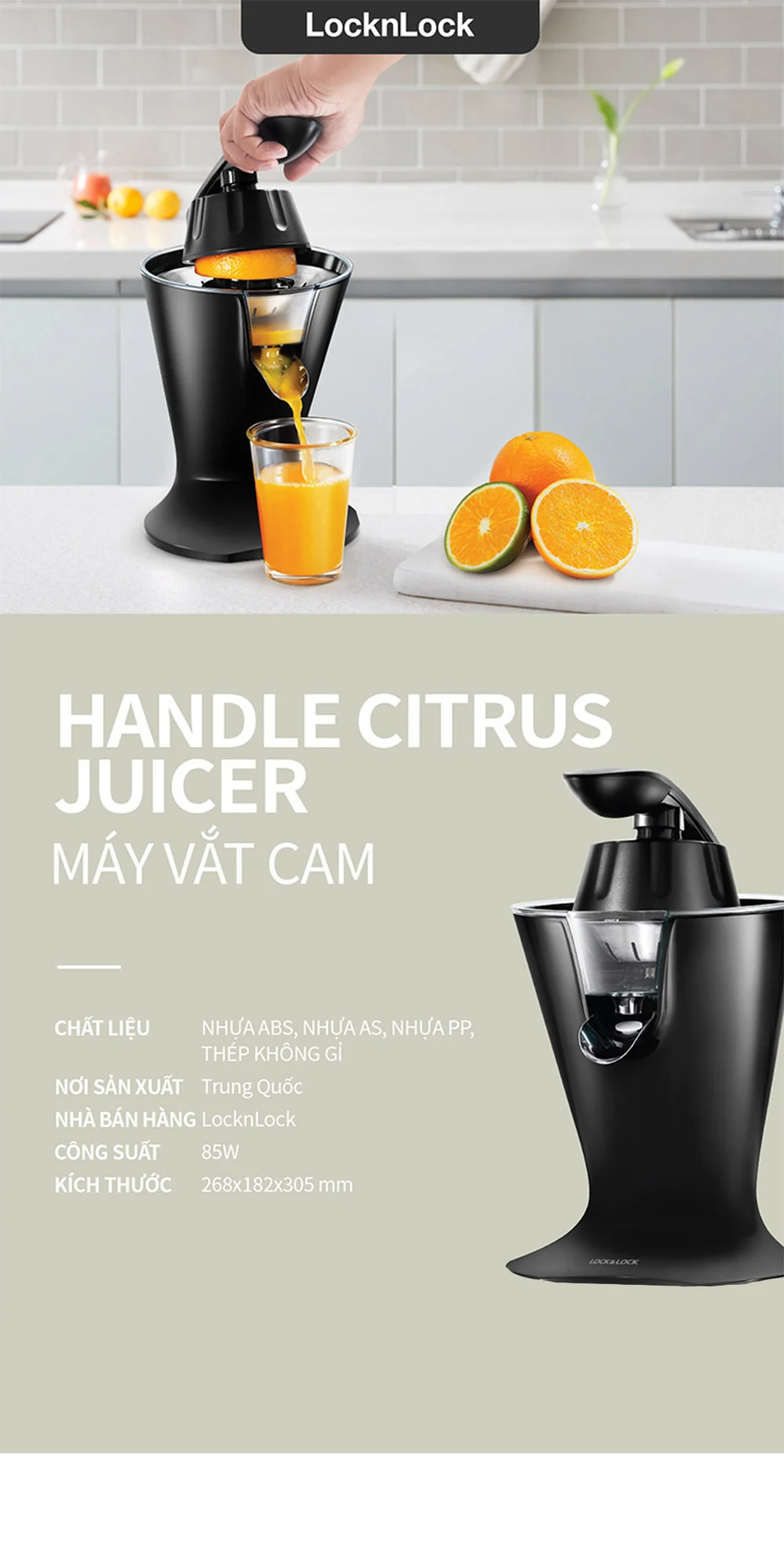 EJJ256BLK - Máy Vắt Cam, LocknLock Handle Citrus Juicer 230V~, 50Hz, 85W - Màu Đen - LocknLock Online