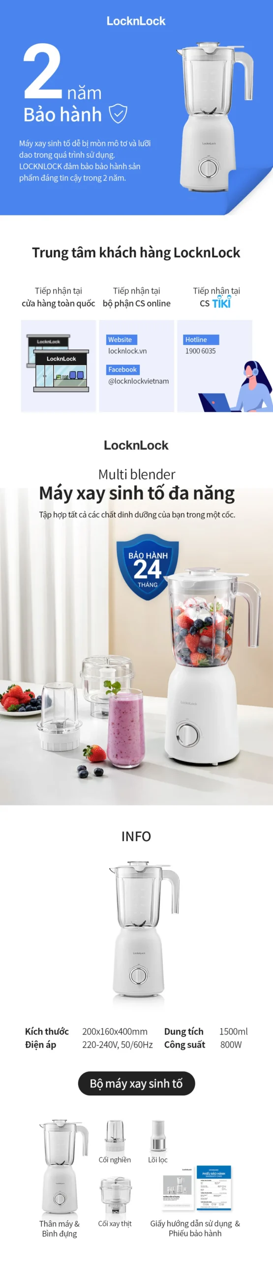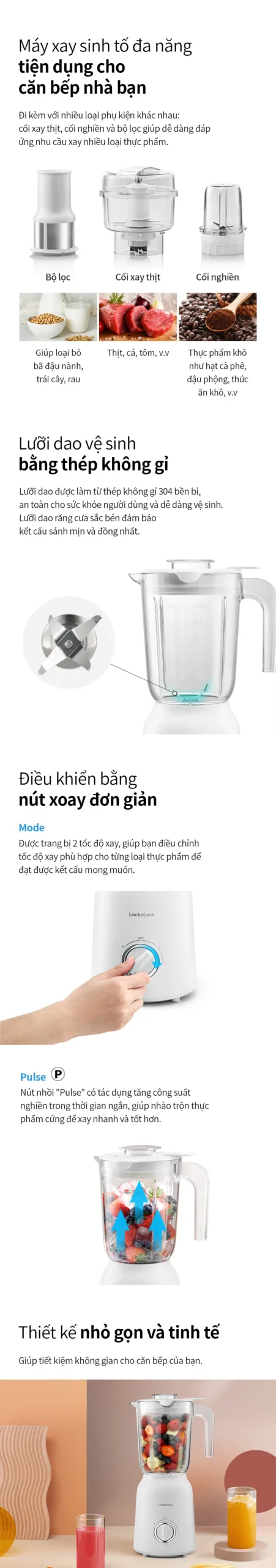 Máy Xay Sinh Tố Đa Năng LocknLock Multi Blender 1.5L – Màu Trắng (EJM416WHT)