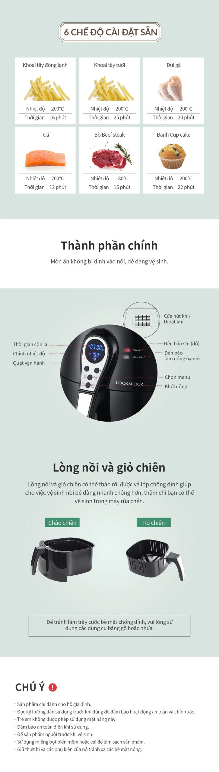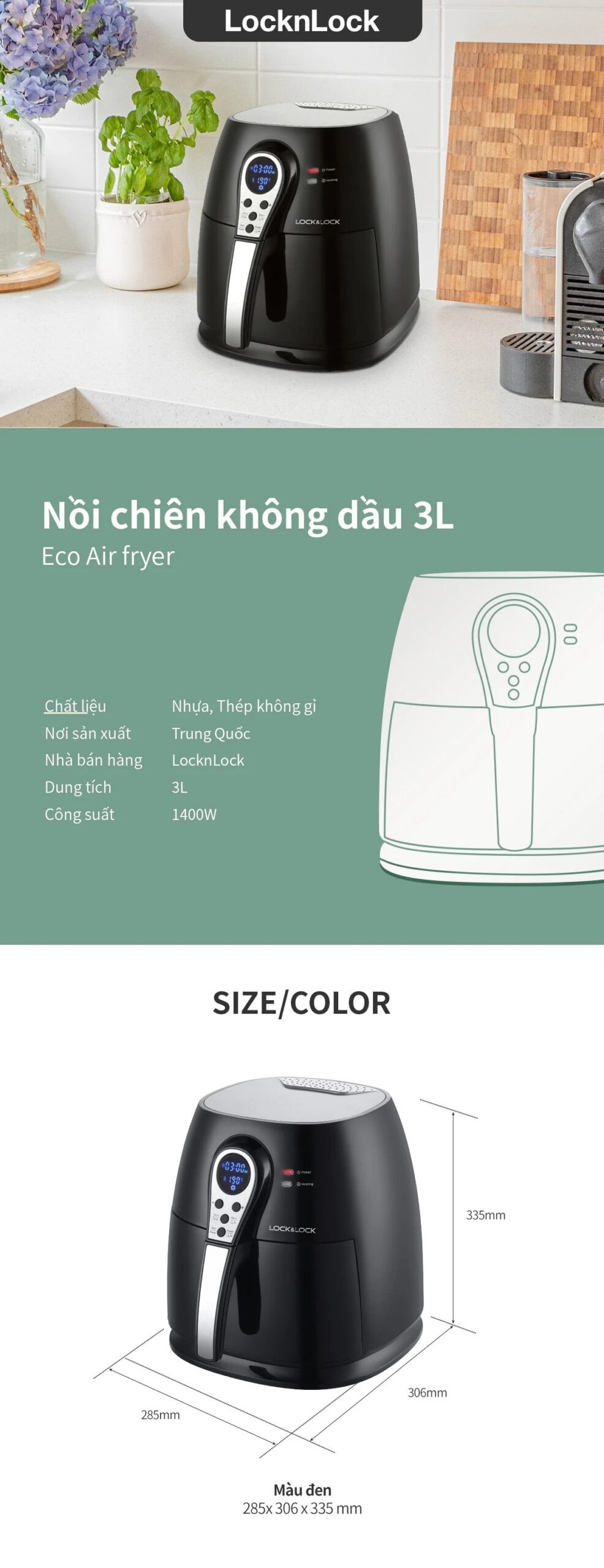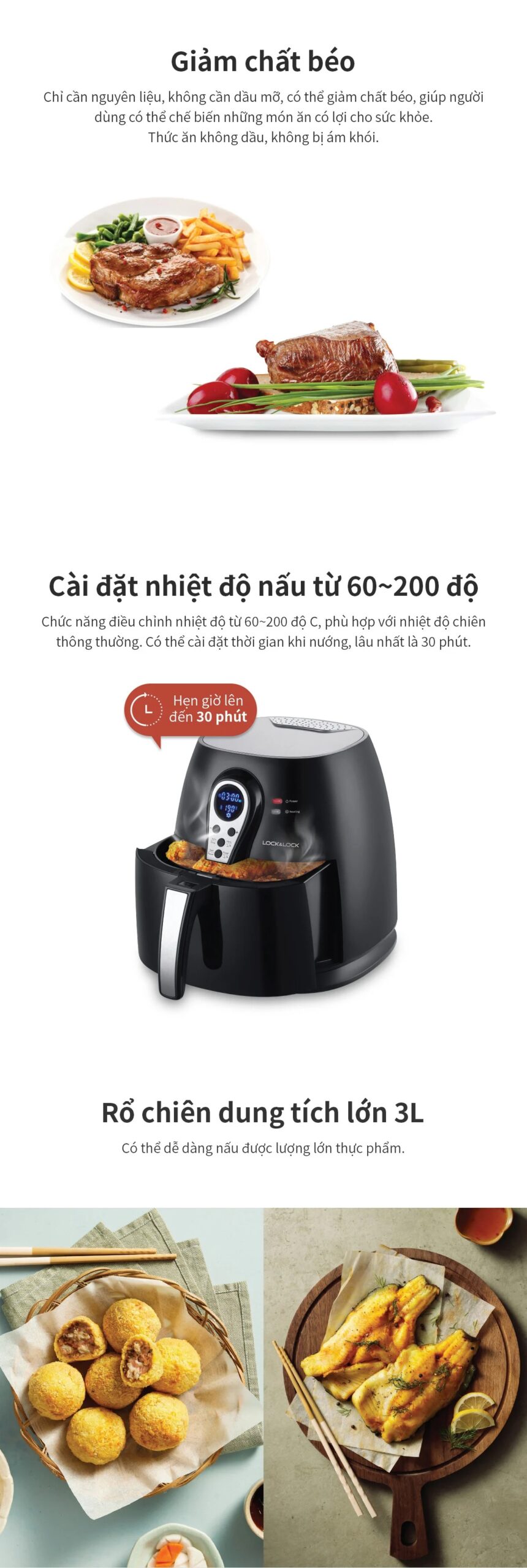 Nồi Chiên Không Dầu LocknLock – 3.0 L – EJF276 là lựa chọn tiện lợi cho gia đình nhỏ, giúp chế biến món ăn nhanh chóng, giòn ngon mà không cần nhiều dầu mỡ, tốt cho sức khỏe.
