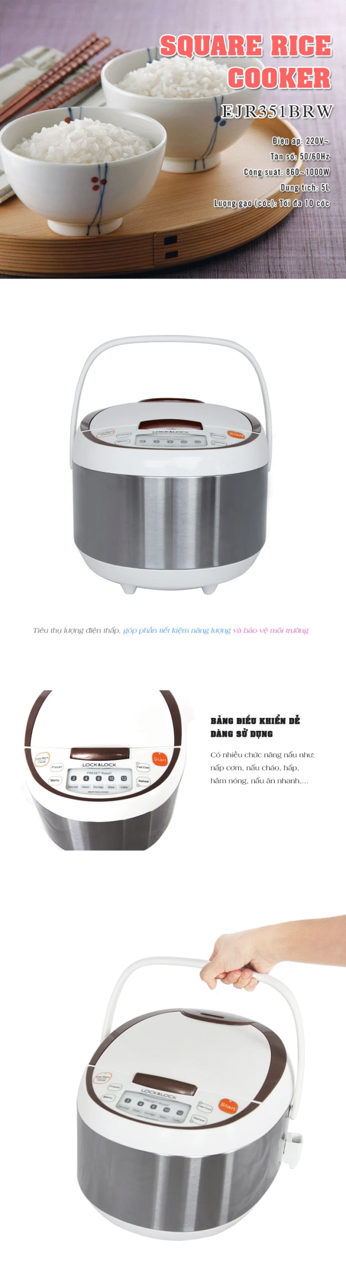 Nồi cơm điện LocknLock EJR351BRW có dung tích 1.8L và công suất 860W, giúp nấu cơm nhanh chóng, hạt cơm chín đều, dẻo ngon. Với thiết kế hiện đại, màu sắc trang nhã và lòng nồi phủ chống dính cao cấp, sản phẩm không chỉ bền bỉ mà còn dễ dàng vệ sinh sau khi sử dụng. Đây là lựa chọn lý tưởng cho gia đình 3 – 6 người.