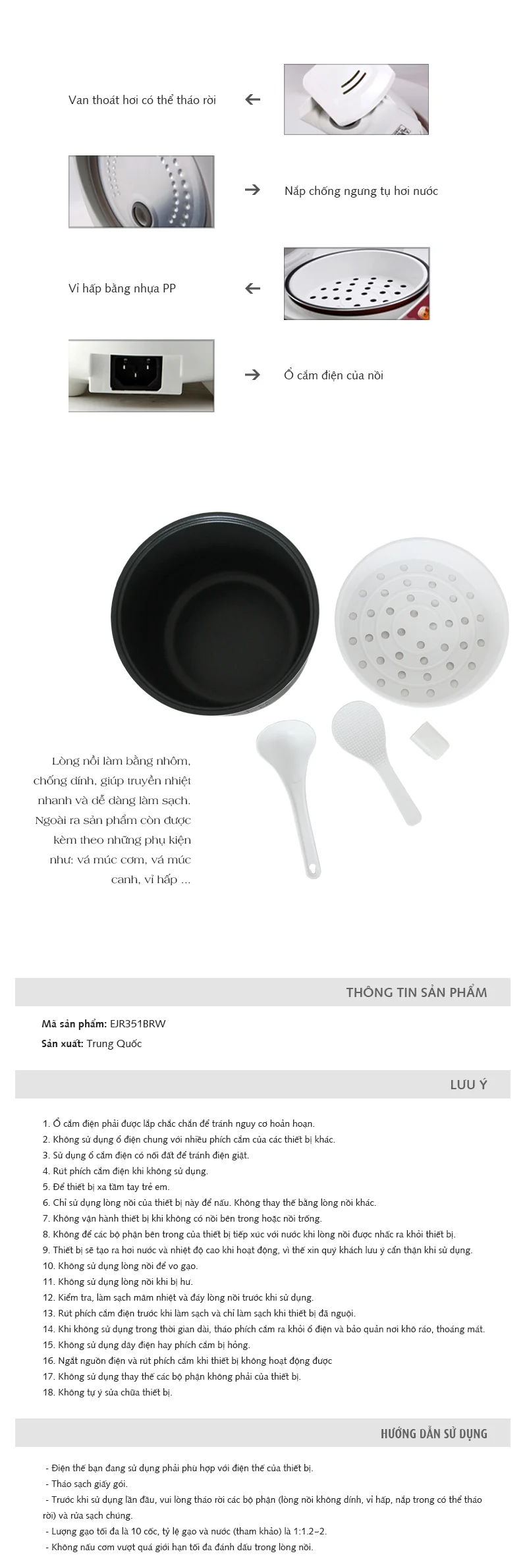 Dung tích 1.8L (5–6 cup), phù hợp cho gia đình trung bình