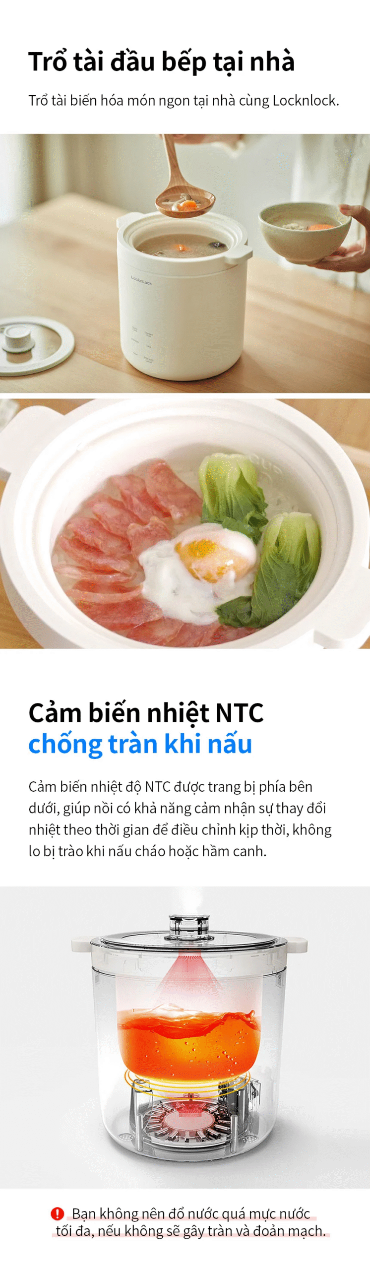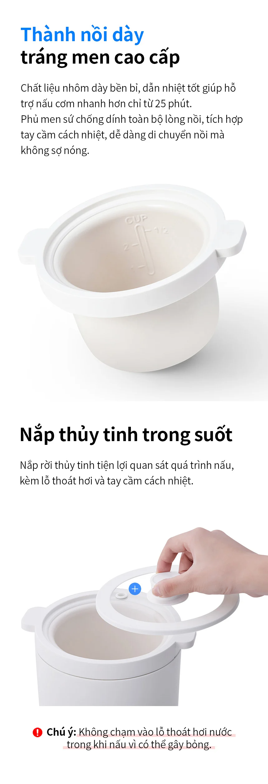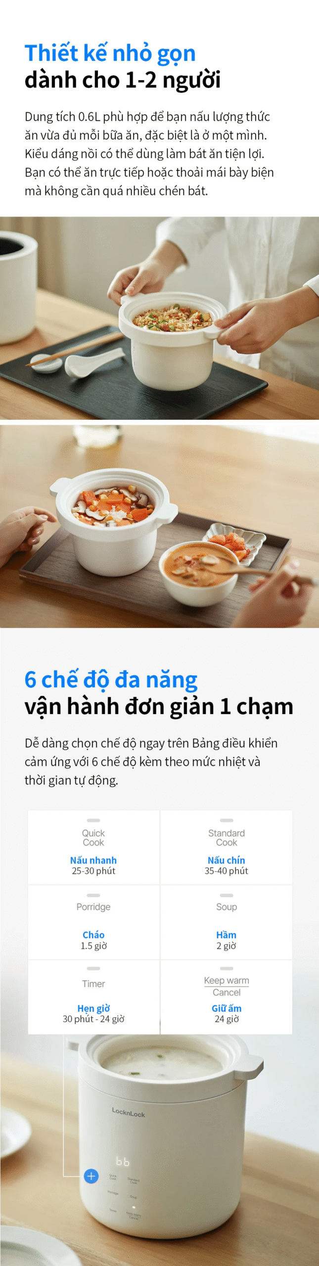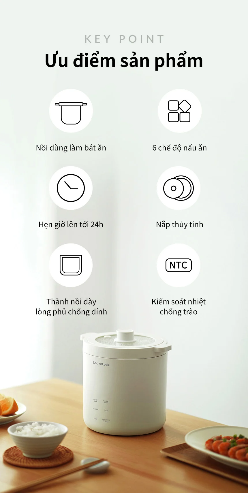 Nồi Cơm Điện Mini LocknLock Bianco EJR314IVY 0.6 L – 300 W, 220 V/50Hz, Màu Ngà